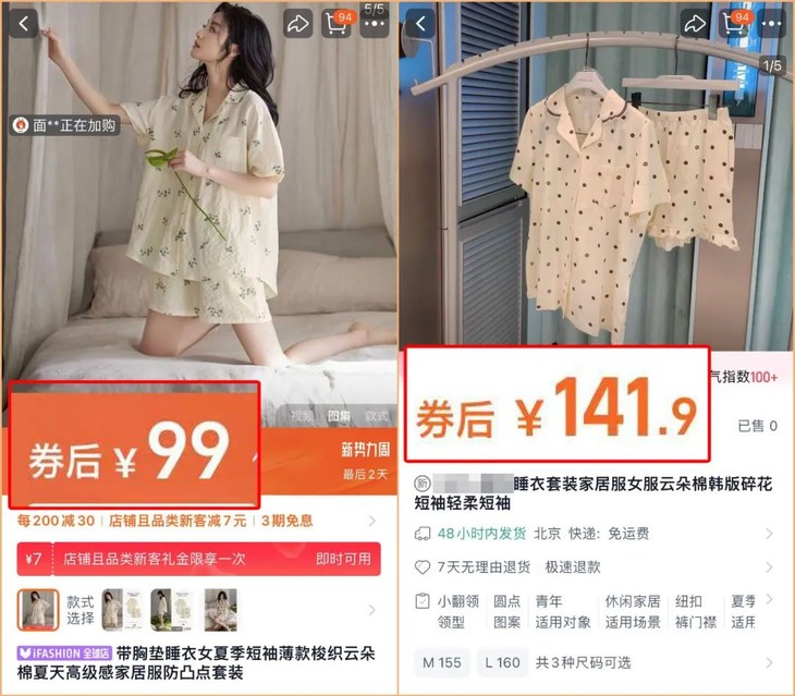 价格差不多只要大牌家居服的1/2,真的超划算的~