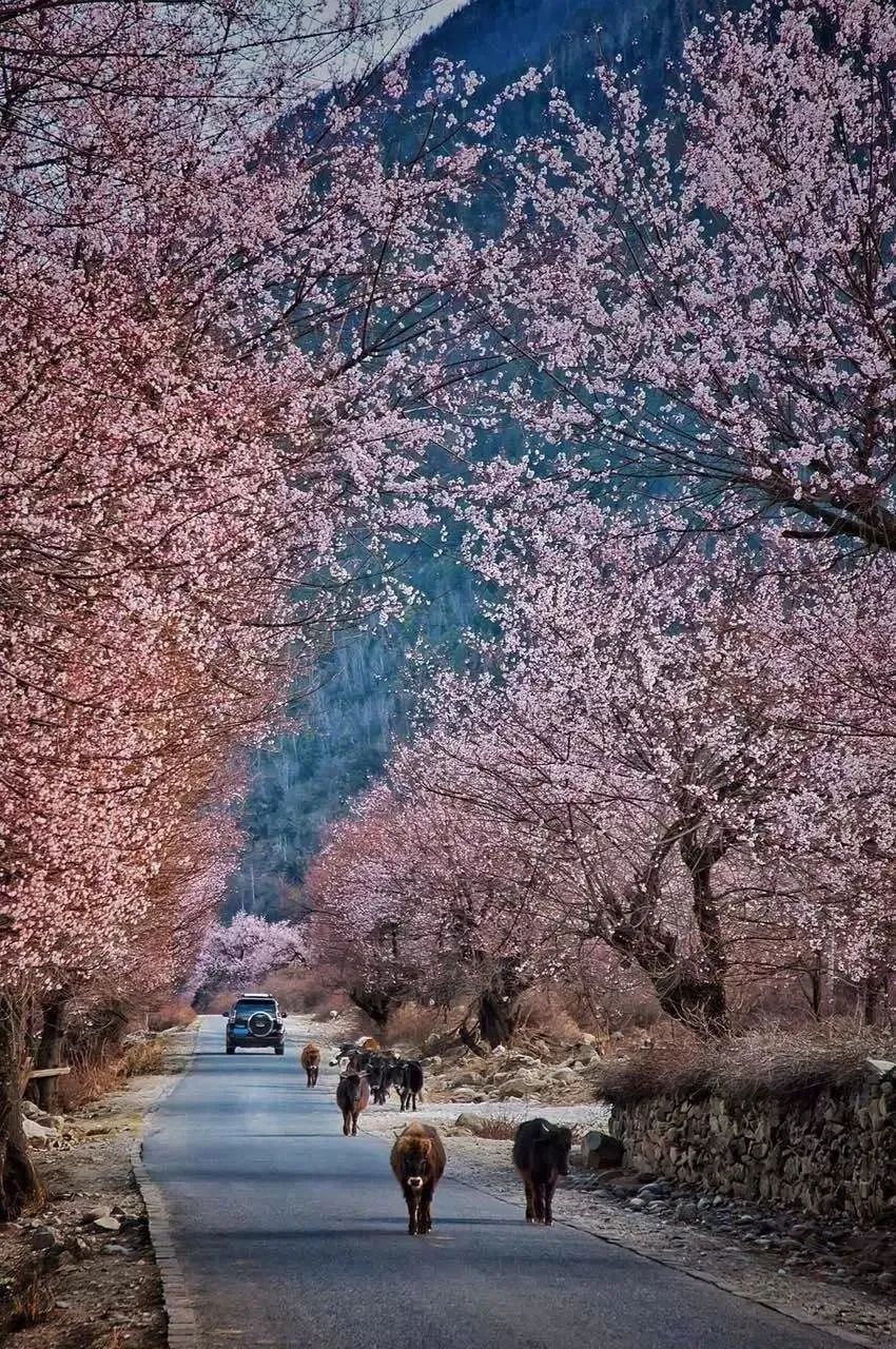 这里的桃花漫山遍野,整个林芝有着300万株以上的野桃树林芝的桃花,而且树体高大,很多寿命已经千余年。她们在河谷边、山脚下、村庄旁,自由生长,向阳怒放!