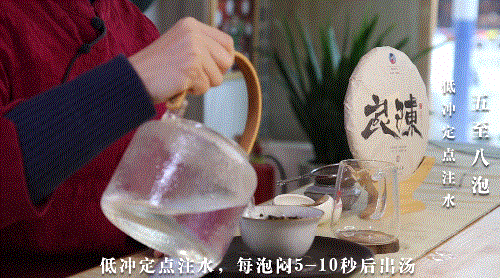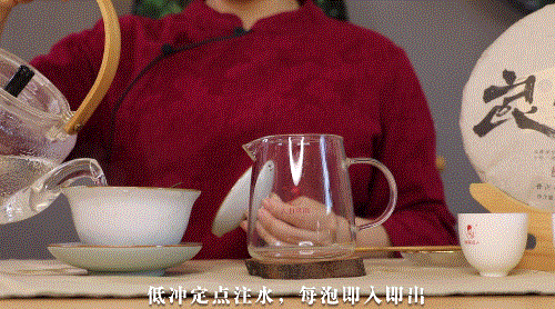 需要注意的是:冲泡时,茶友可根据茶块的紧结程度来灵活调整闷泡时间。比如茶块撬的较散,即入即出就好;如果茶块撬的较紧结,则可稍加闷泡5-10秒再出汤。