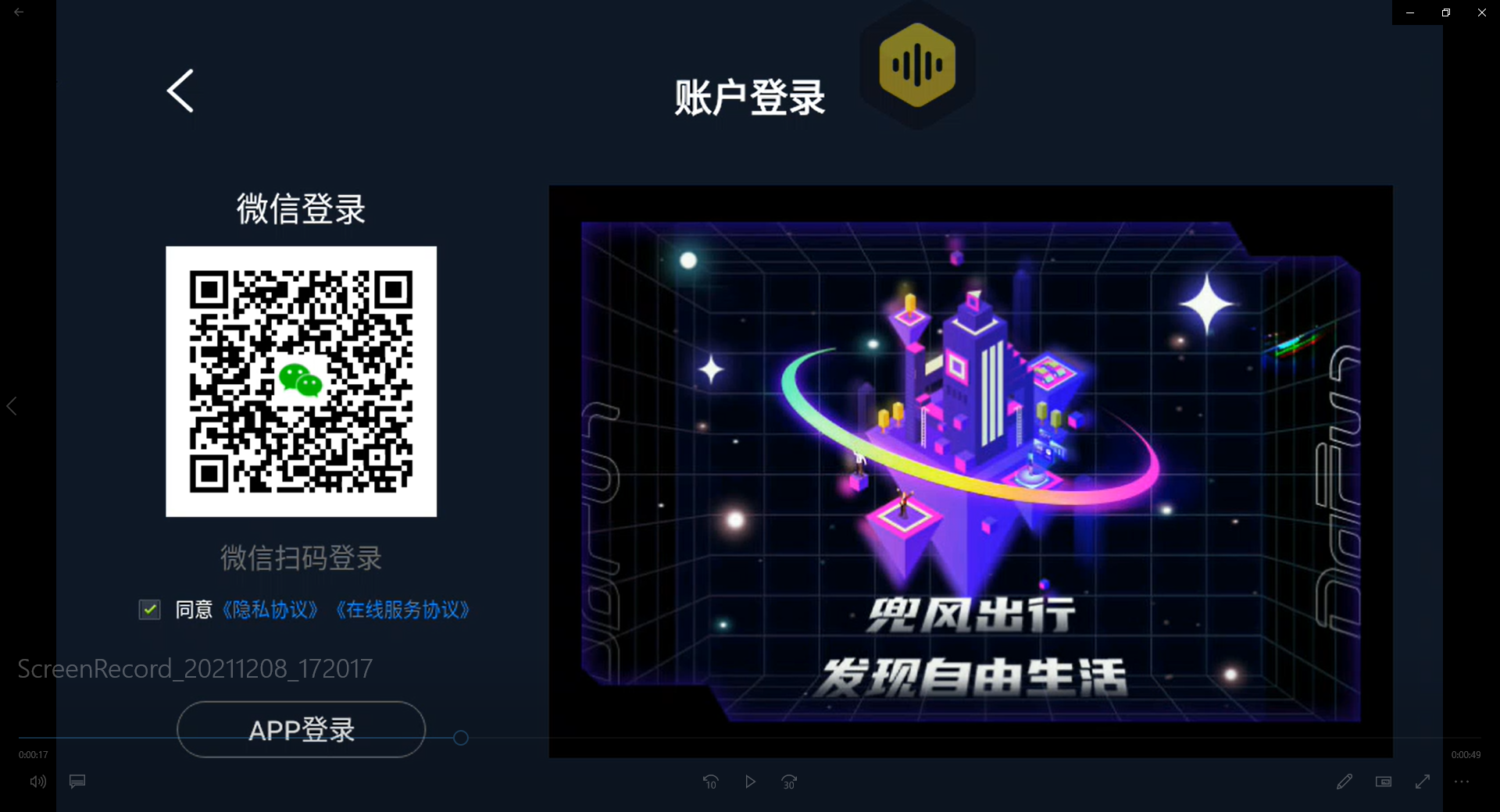 注意:这里有APP登录和微信登录,选择对应的登录方式即可