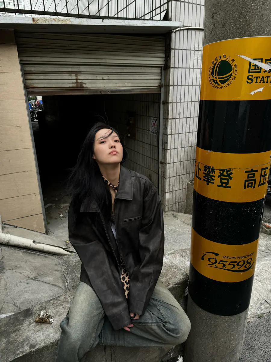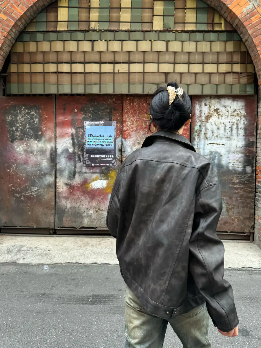 复古皮衣➕工装牛仔有点帅啊我说