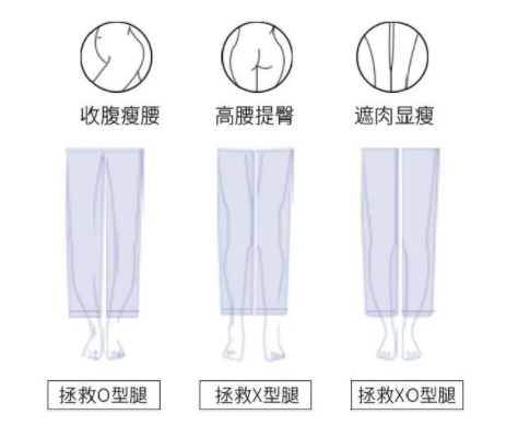 裤子特殊的竹节纹往下延伸,视觉拉长比例,还把腿粗、小腹大、屁股大这几个头疼的问题解决了。