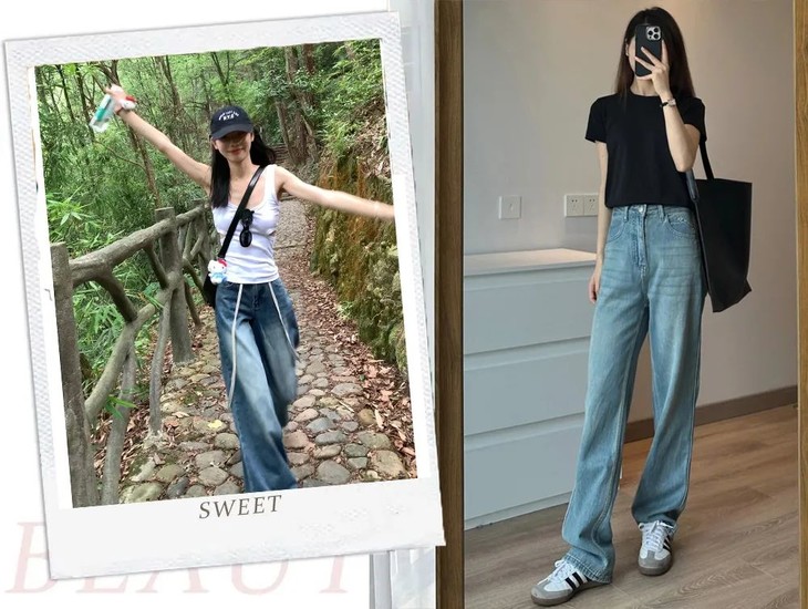 加上裤长可拖地,直观感受就是“脖子以下全是腿”,一秒变身高个子“长腿精”。