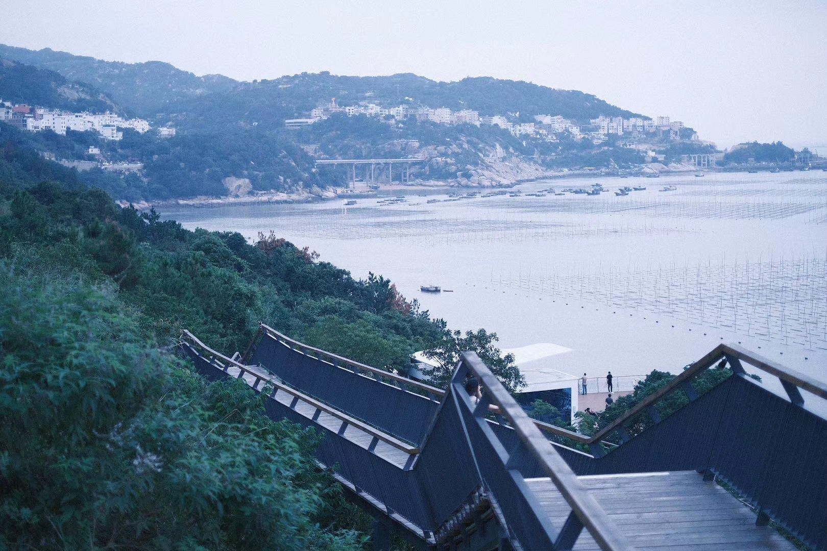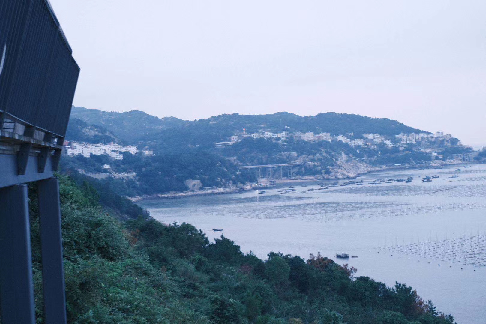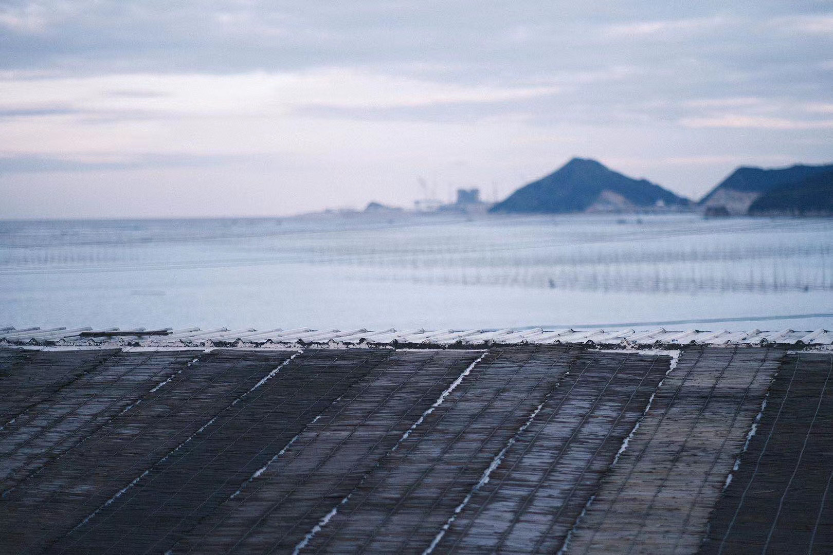就能看到庞大整齐的紫菜架浮出水面,是海上非常漂亮的一道风景