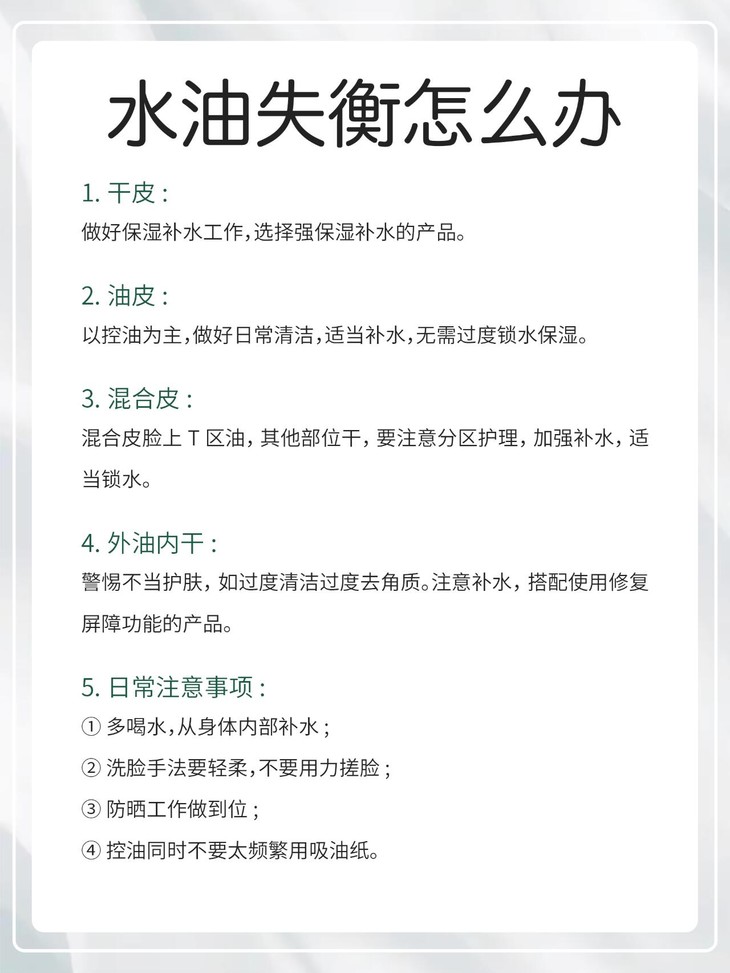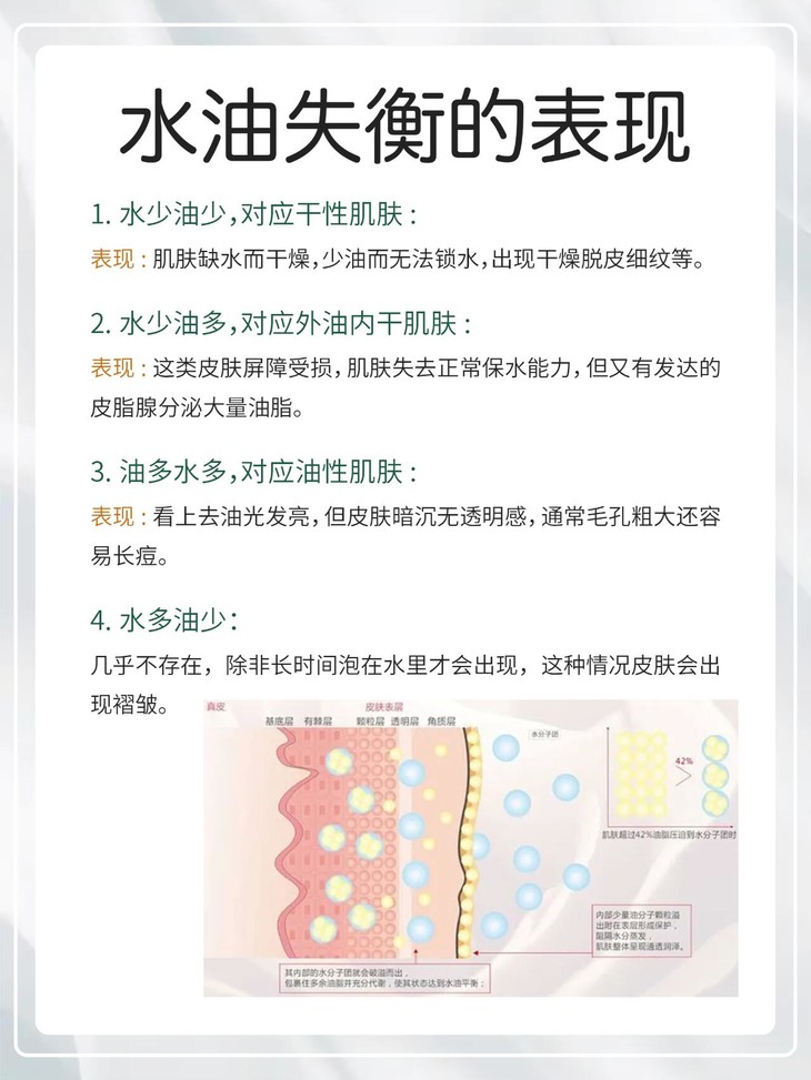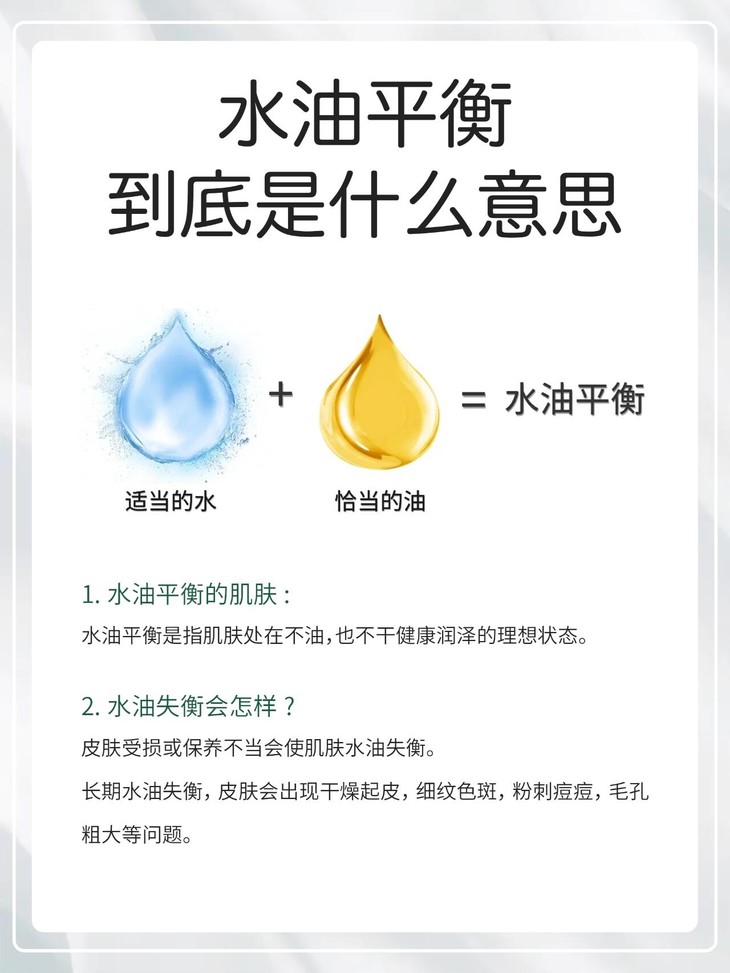出油、毛孔粗大、长斑长痘等皮肤问题都和肌肤水油是否平衡有关哦