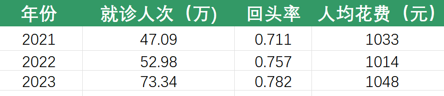 私人医生服务能否成功落地尚需拭目以待,但 “卓正会员计划”的成效显而易见。“卓正会员计划”于2020年被推出后,以年费制会员代替储值制会员,与之相对应的是,会员账户总数逐年大幅增长,会员账户储值不断下降。截至2021年至2023年各年末,卓正医疗的会员账户总数分别为6.07万个、7.97万个和9.72万个,会员账户储值分别约为4520万元、3870万元和3540万元。尽管储值有所下降,但会员计划收入却呈现出强劲的增长态势。截至2021年至2023年各年末,卓正医疗的会员计划收入分别为740万、1860万、2082万。虽然会员收入中的占比在报告期内分别仅为1.8%、3.9%和3%,但这笔收入的成本几乎可以忽略不计,毛利率分别高达100%、89.4%和95.1%。在会员计划的加持下,卓正医疗的医疗服务也赢得了患者的广泛好评。2021年至2023年,在卓正医疗的医疗服务机构及/或线上医疗服务平台付费患者就诊总人次分别为47.09万人次、52.98万人次及73.34万人次,人均就诊花费为1033元、1014元和1048元,患者回头率分别为71.1%、75.7%及78.2%。