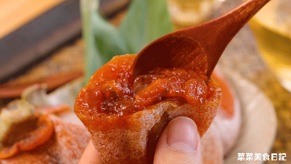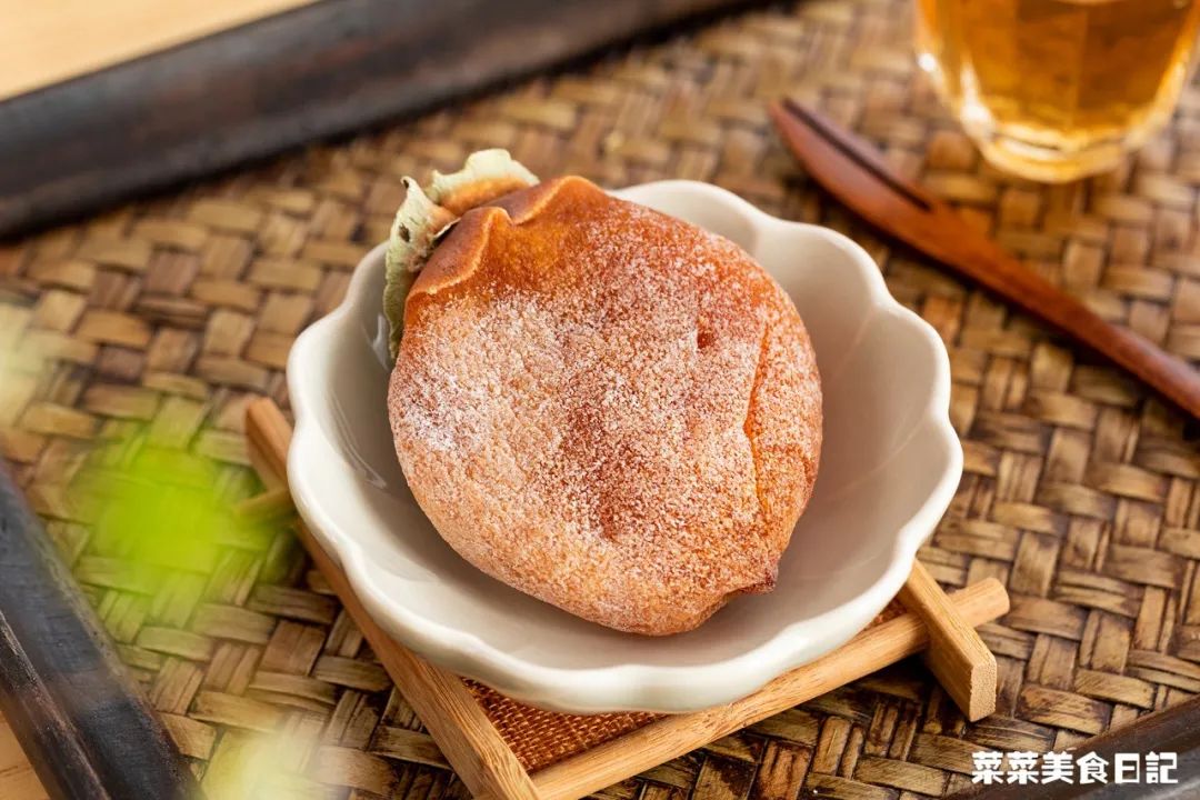轻咬一口,一层酥沙的糖霜,一层绵糯的皮子,一团流心弹嫩的柿子味“果冻”