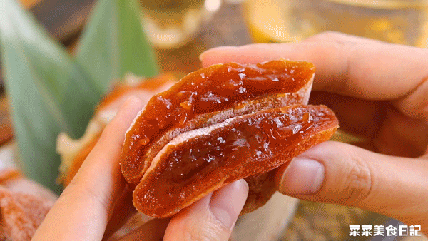60天柿饼果肉内部充分糅合,果肉口感像蜜脂果冻一样,入口醇滑软糯,非常美妙。