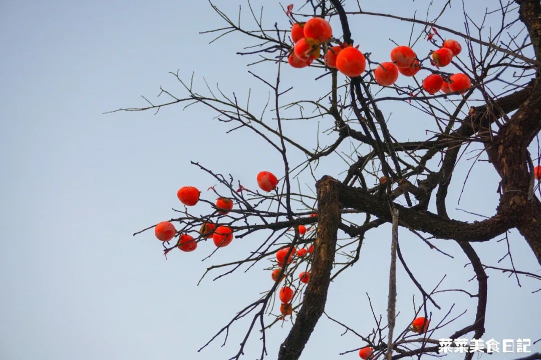 陕西富平县的柿子树都秃了,仅留了这么一颗独苗,给观光客拍照: