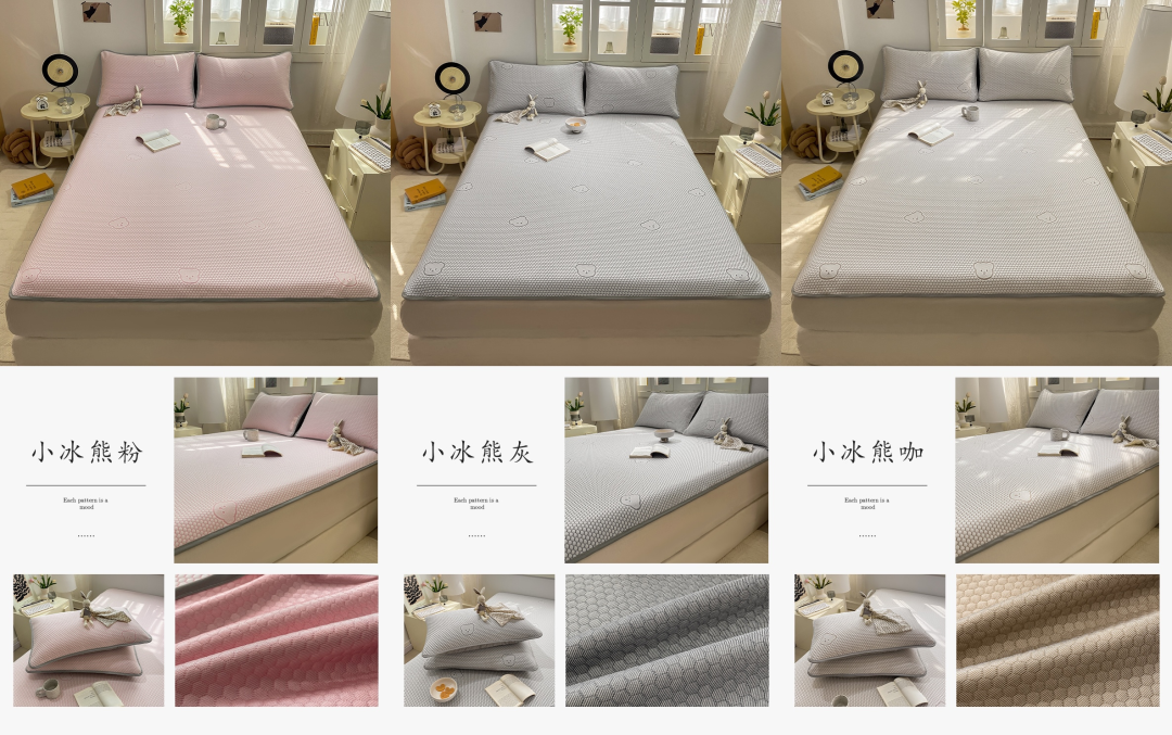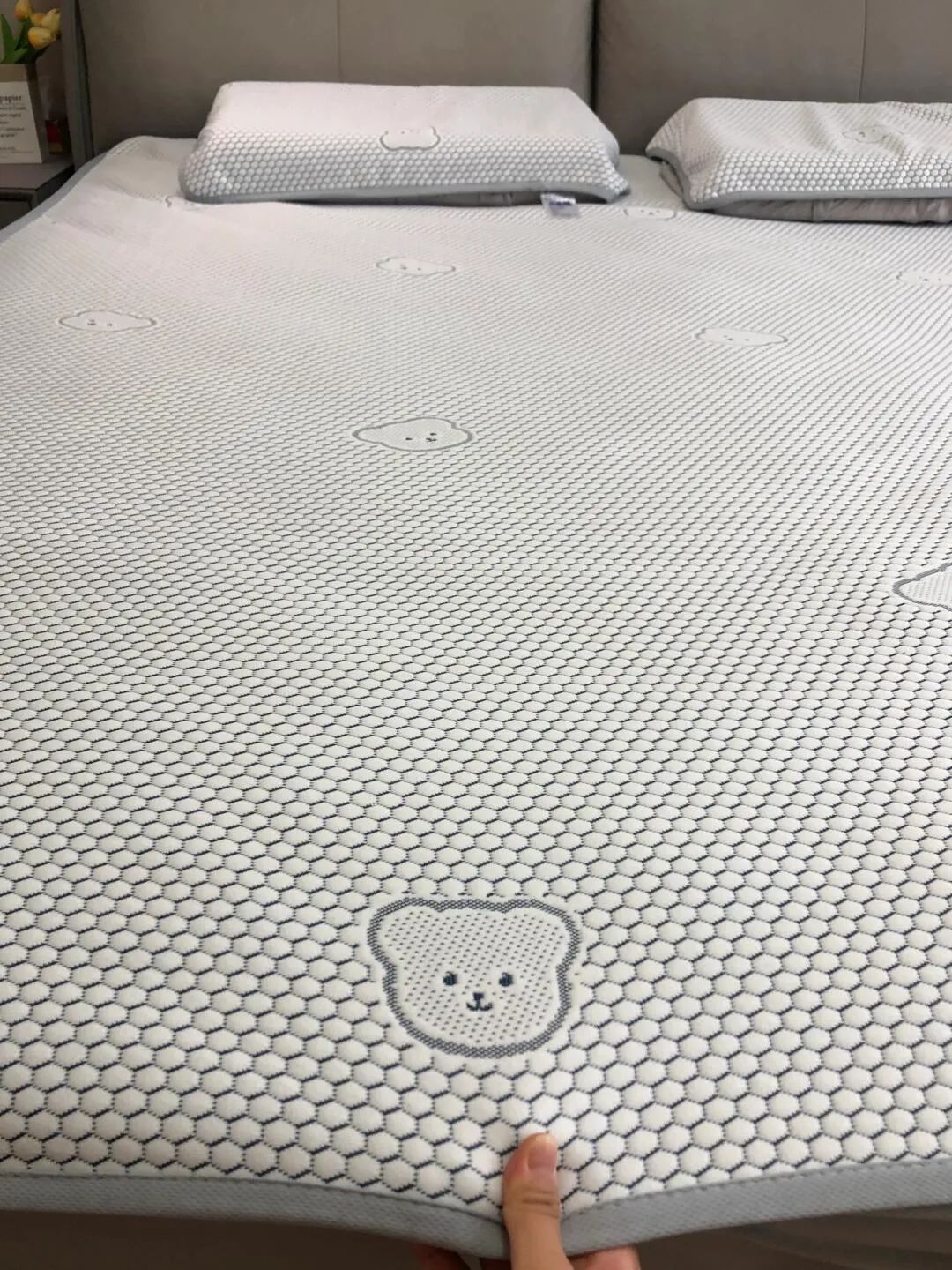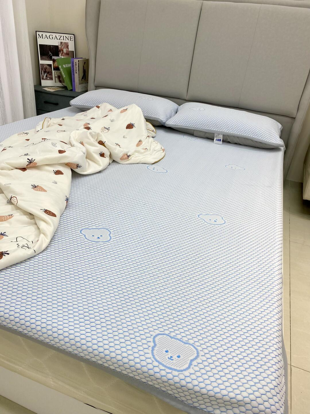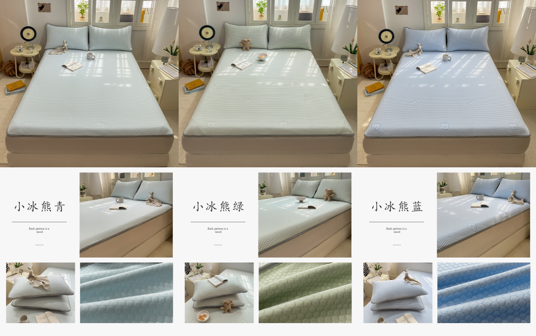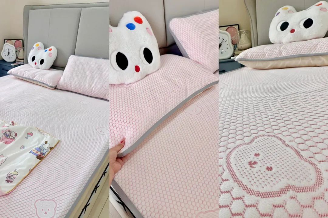 有些凉席刚睡下的时候是凉的,但不透气,睡醒了照样憋一身汗,而小冰熊是凉感丝的面料。