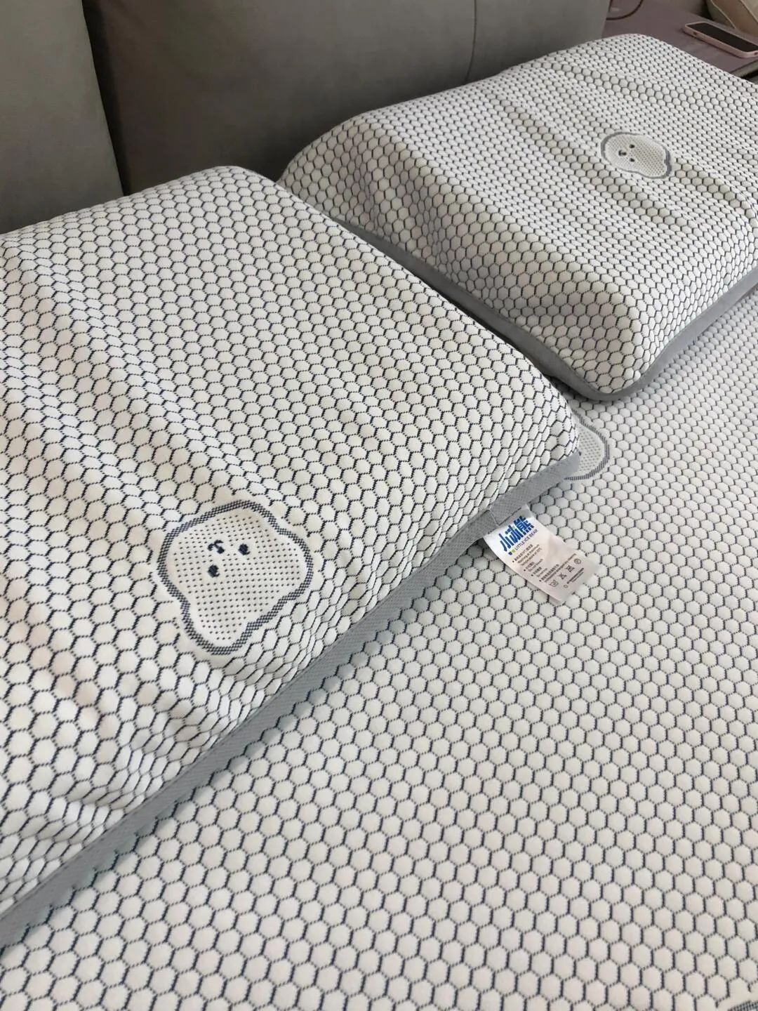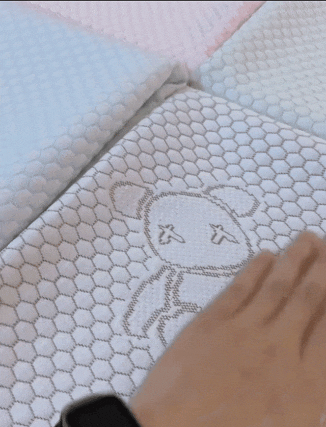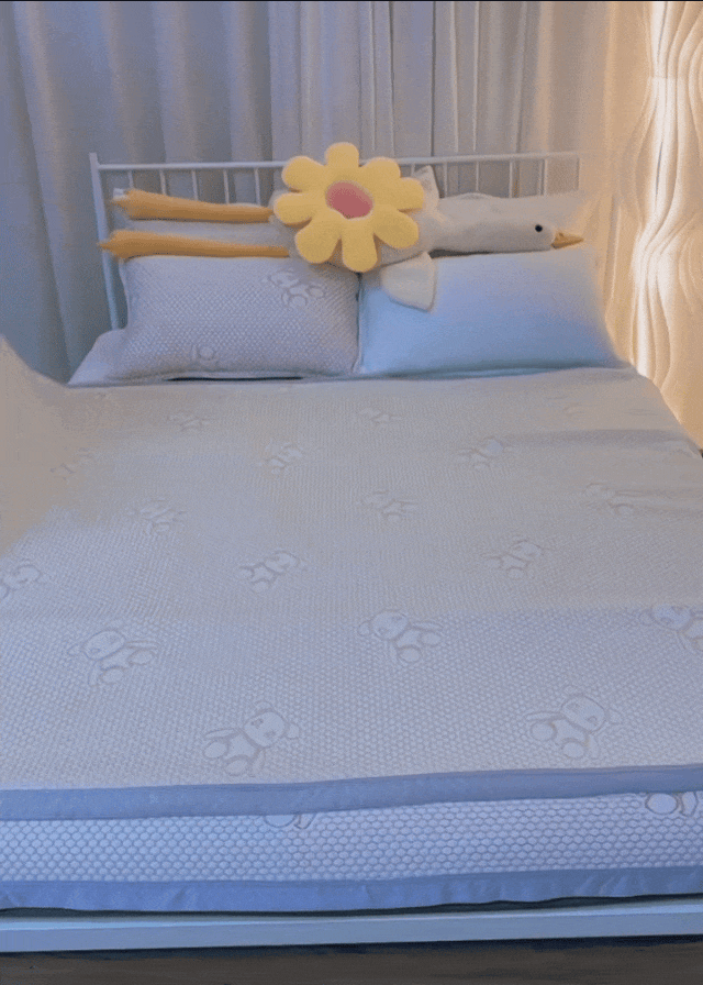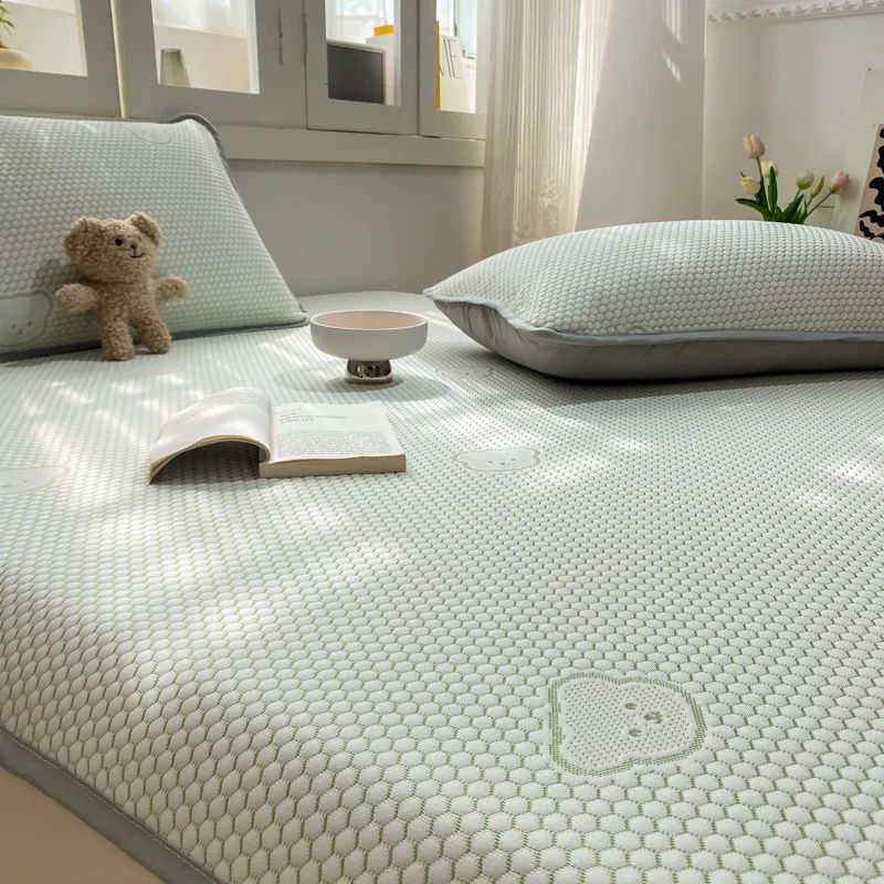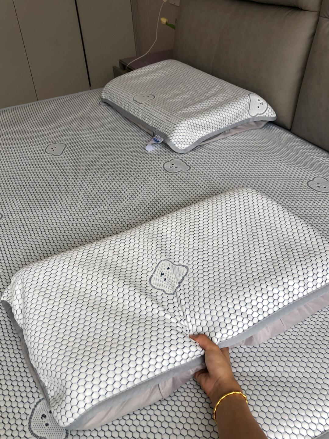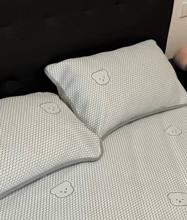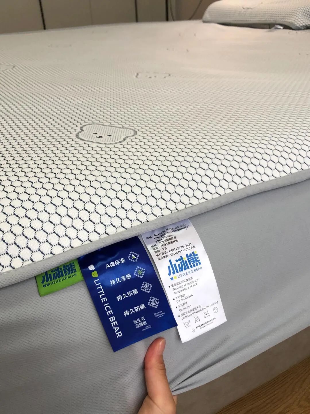 有些凉席刚睡下的时候是凉的,但不透气,睡醒了照样憋一身汗,而小冰熊是凉感丝的面料。