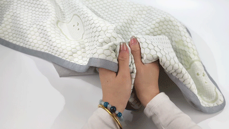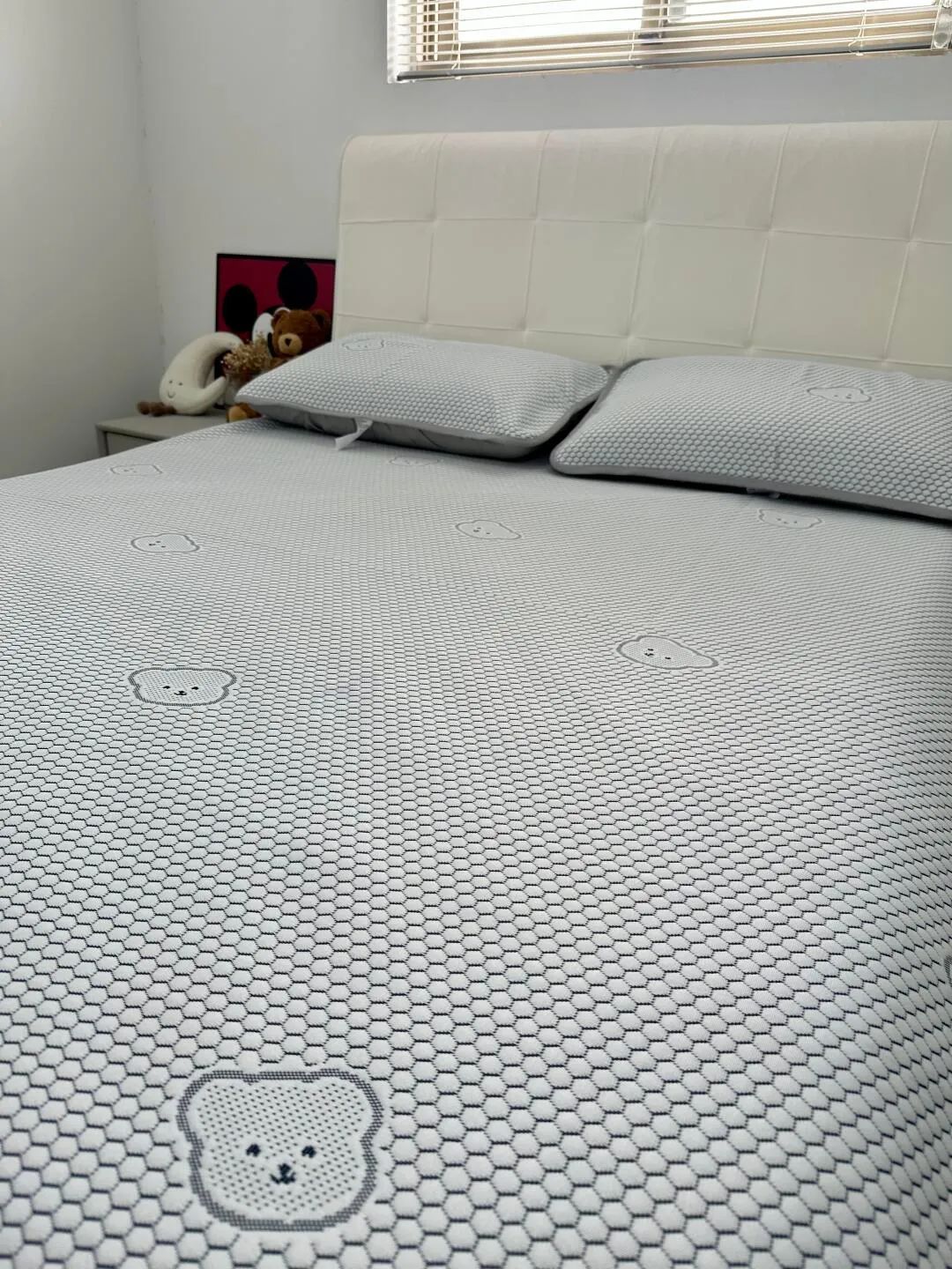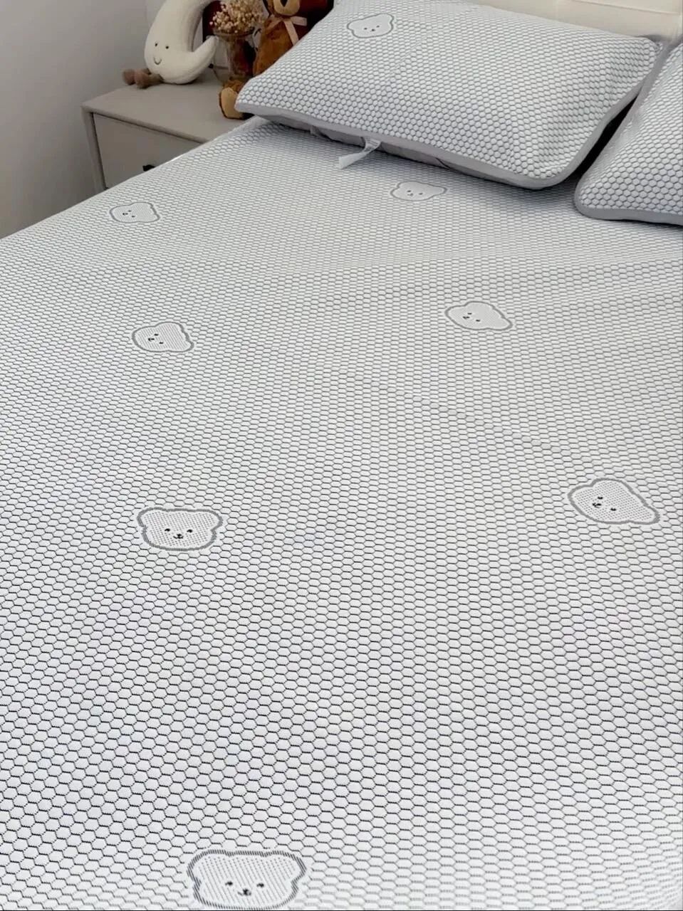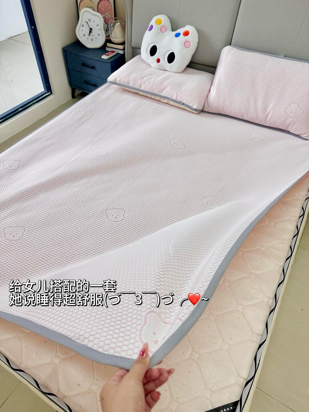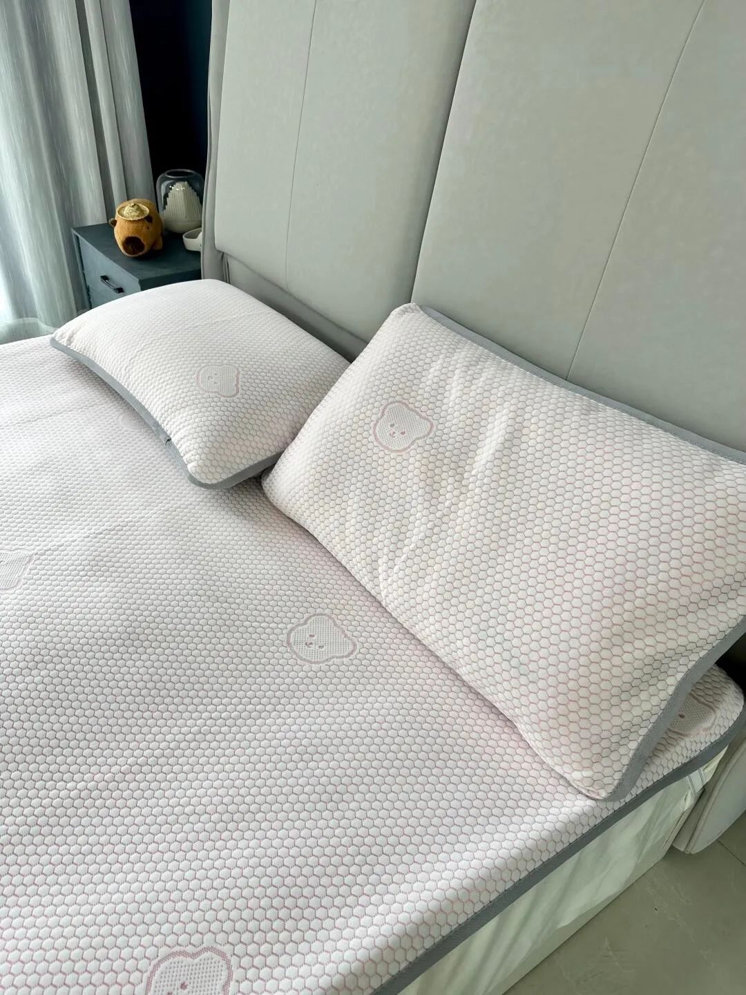 有些凉席刚睡下的时候是凉的,但不透气,睡醒了照样憋一身汗,而小冰熊是凉感丝的面料。