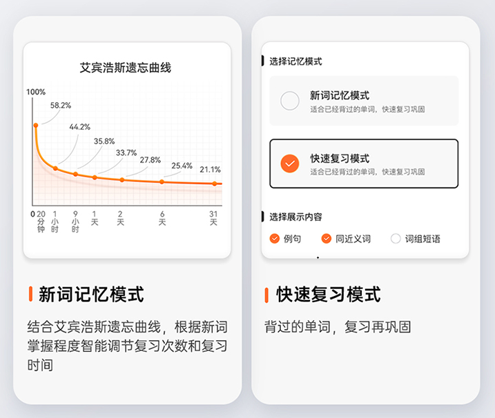 单词卡的存在,不仅帮助家长们解决了孩子们抗拒背单词的问题,更重要的是,它是容纳了海量词库,遵循艾宾浩斯遗忘曲线,还可自定个性化学习的神器。