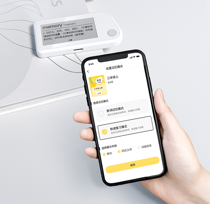 还有【新词记忆模式】与【快速复习模式】双模式,遵循科学的记忆曲线法,完全不用担心孩子们背单词的效率和质量,小巧精致的外观设计,随时装进口袋,拿起来利用碎片时间记忆,真的是碎片时间学习必备。