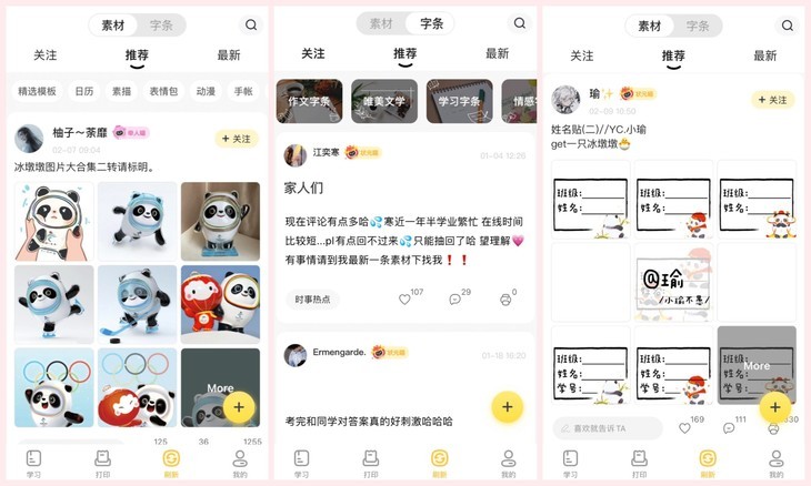 在喵喵机app的素材广场页面中有海量素材,打印分辨率可以达到300dpi,视网膜级别的高清打印分辨率,不管是文字还是图片都能呈现清晰细腻的效果。