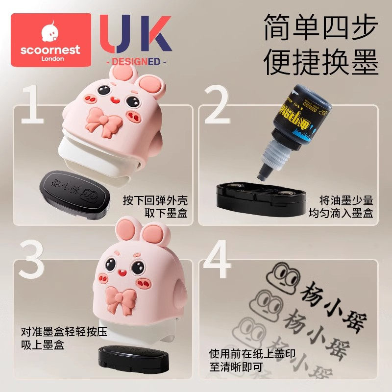 只需要轻轻一盖🌟按上松手会自动回弹,名字就清晰的印上啦!