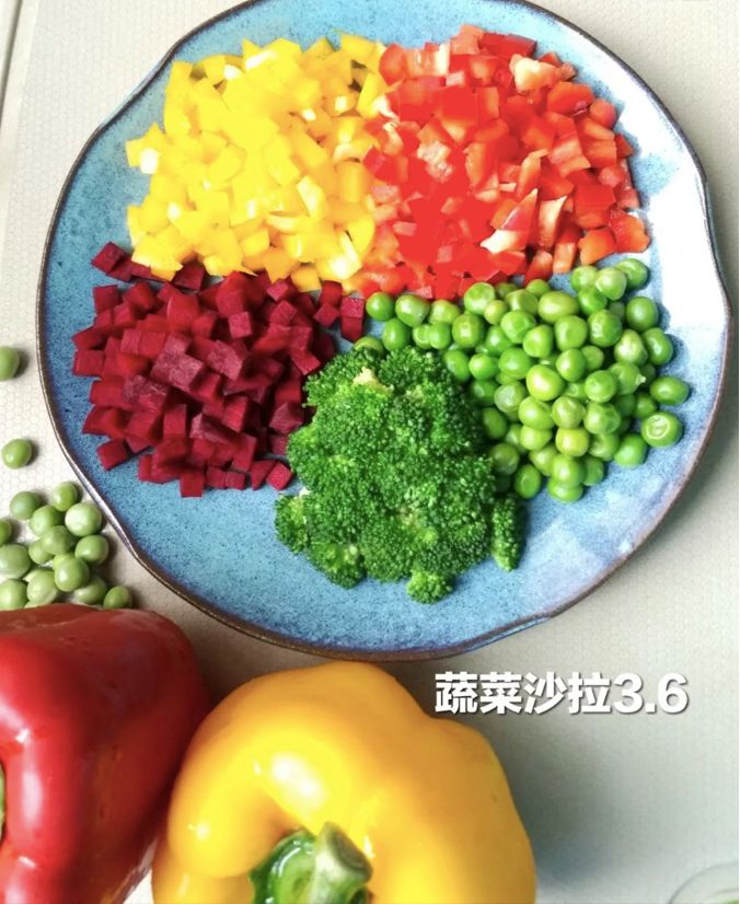 【食材】红&黄彩椒粒、熟豌豆、熟西兰花、甜菜根粒