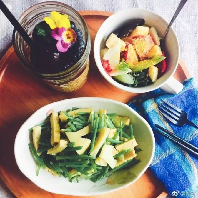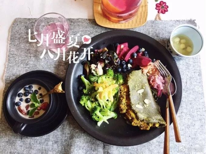 【食材】柠檬黑枸杞蔓越莓水、桂花炖鲜莲子、火麻仁露椰子酸豆奶、一夜渍罗勒茄子、柠汁黑枸杞日式梅咸海带、紫苏桃子姜、蓝莓甜菜根、白灼西兰花、羽衣甘蓝荞麦卷饼、姜黄炒豆腐杂豆