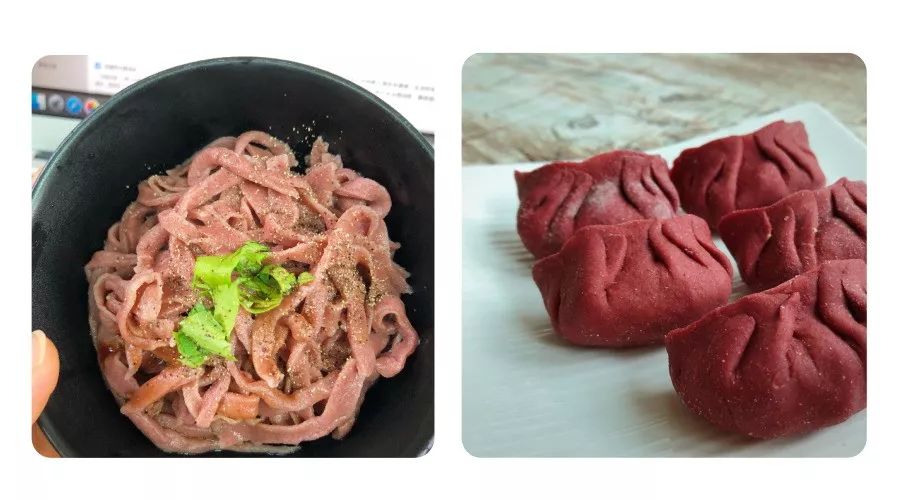 【做法】将甜菜根粉和面粉混合和面,做成各种红色的面点。