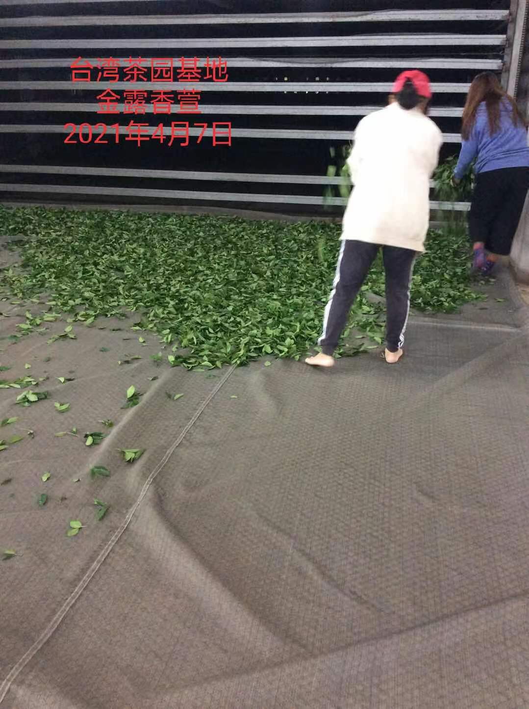 揉捻后的鲜叶、本身有水份含量、堆叠起来、在大自然酵素的作用下、继续氧化、深层氧化、已经在充份揉捻下的鲜叶、叶片颜色加深转红