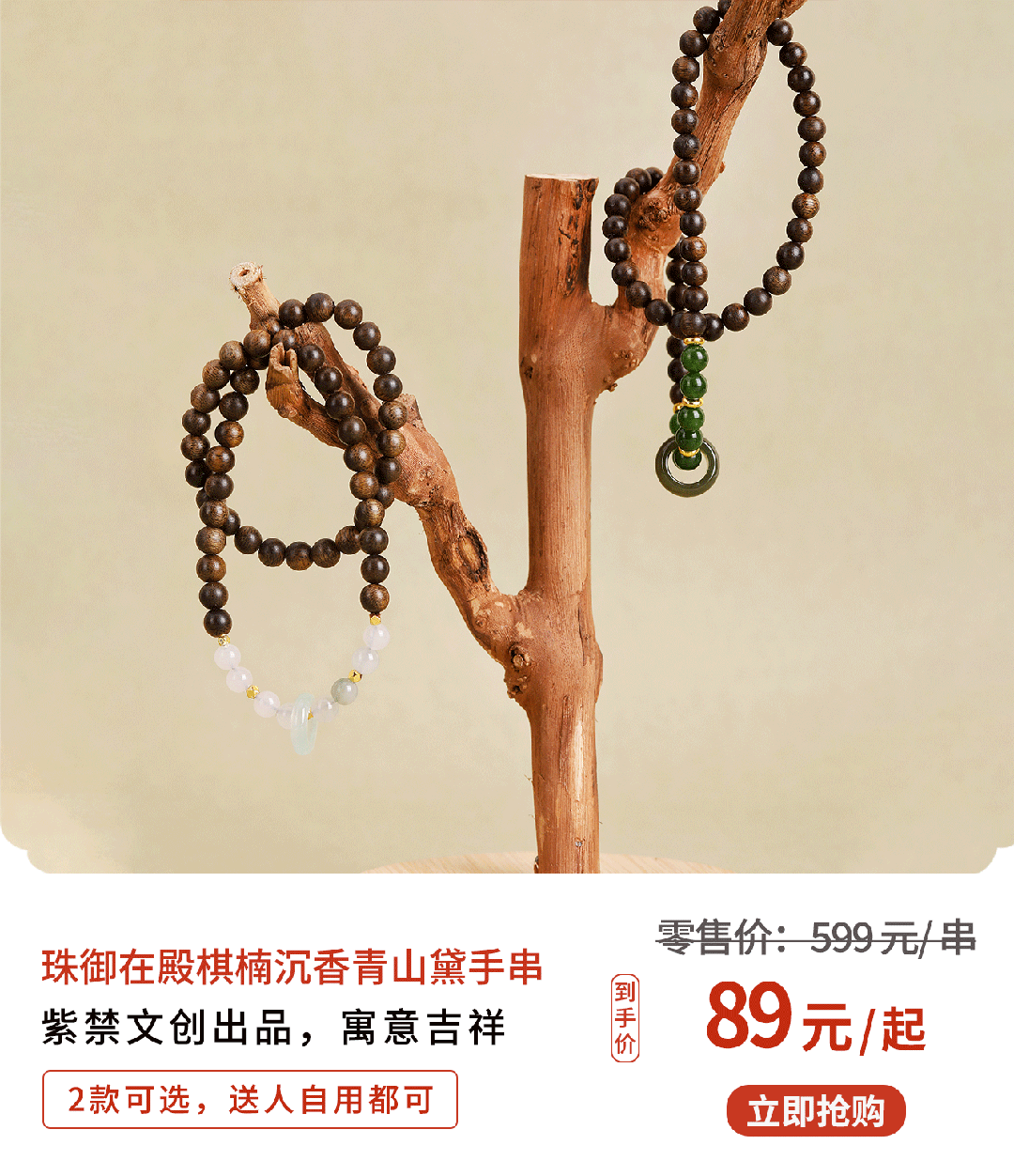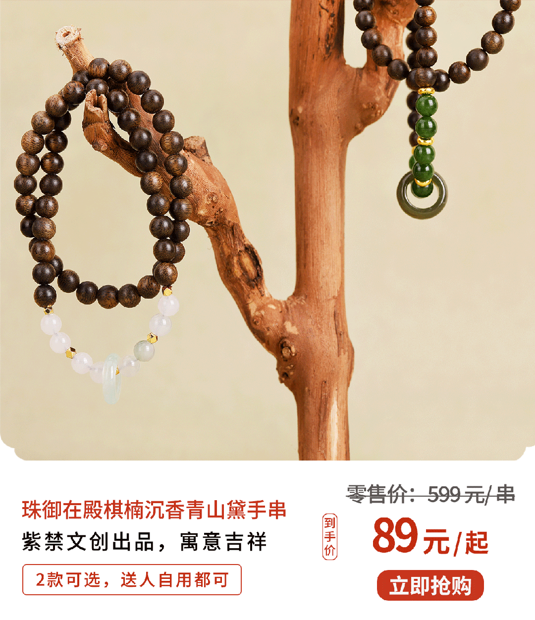 经过我们的筛选和对比,给家人们带来这款入门款但是也能收藏、自用送人的紫禁文创出品的【珠御在殿天然棋楠沉香青山黛手串】。