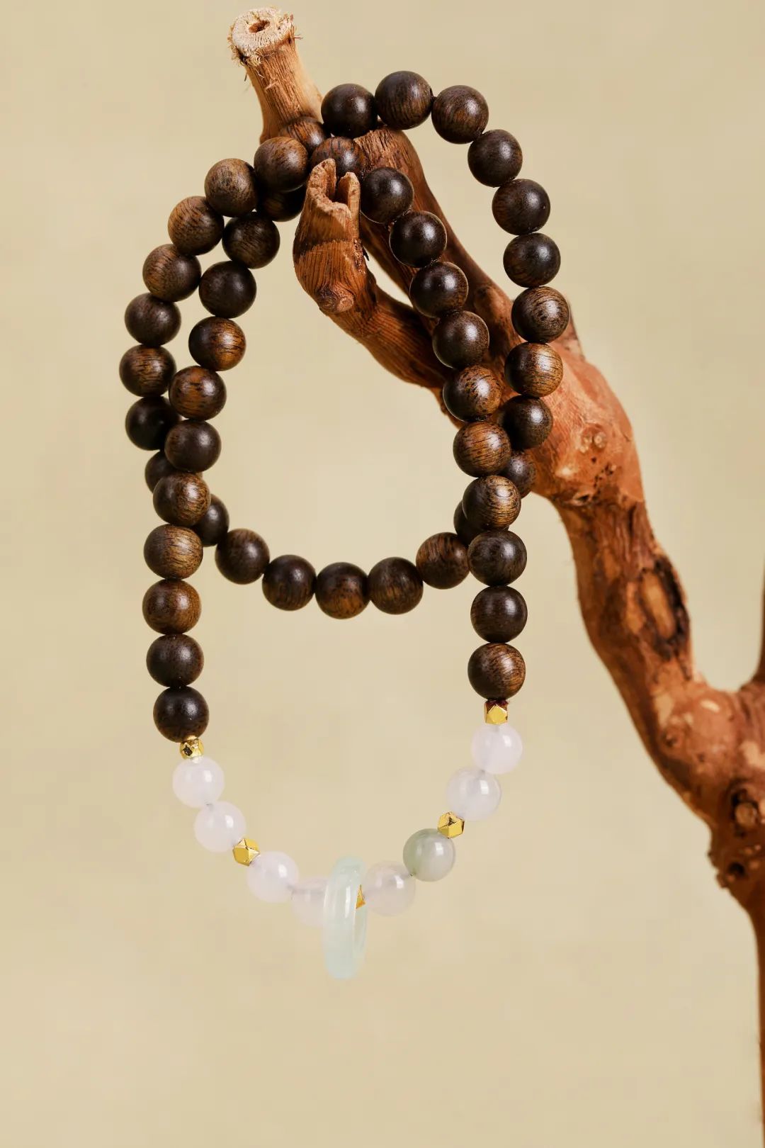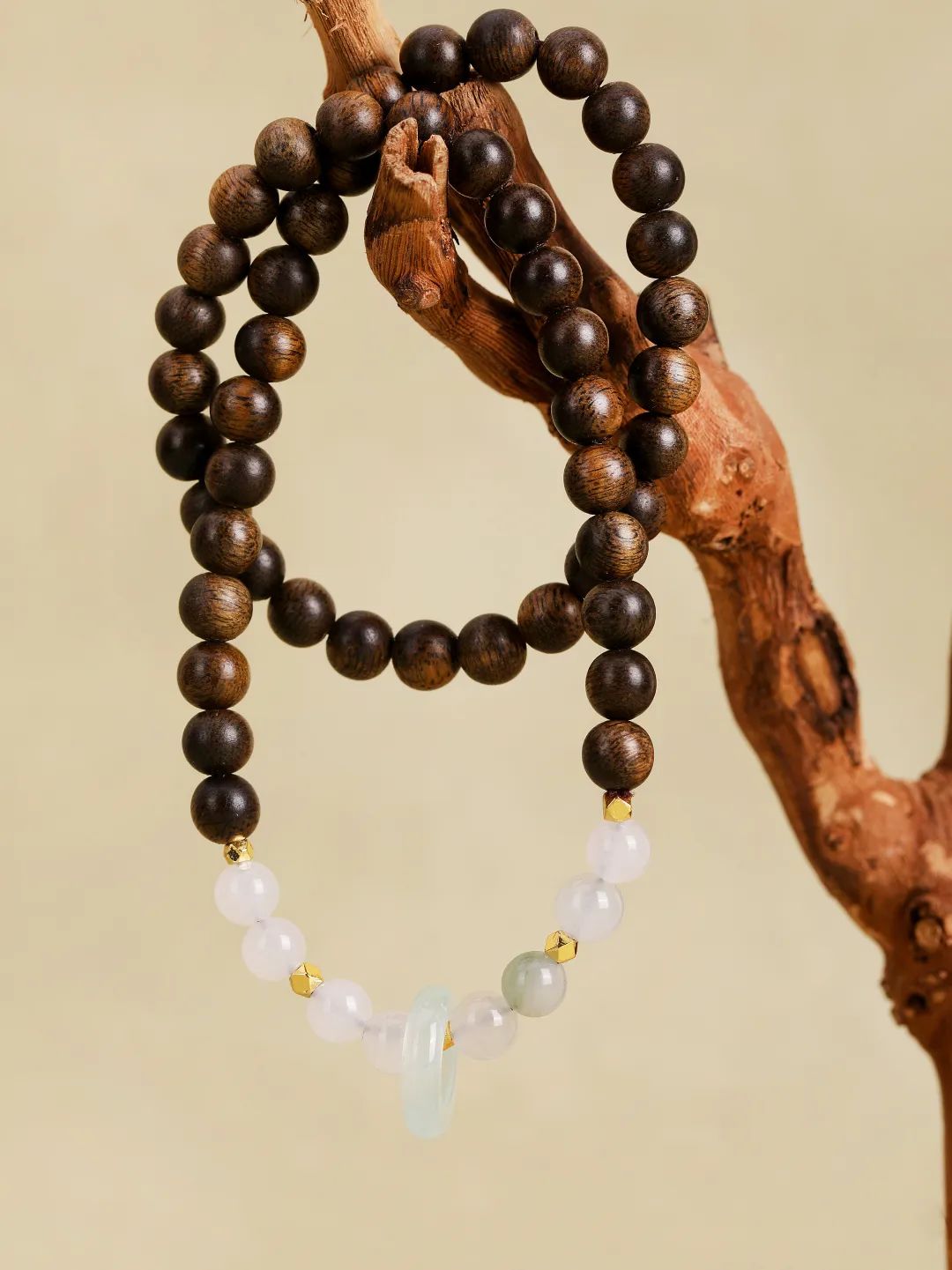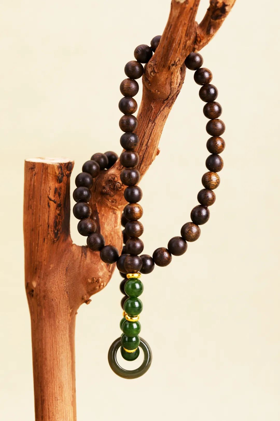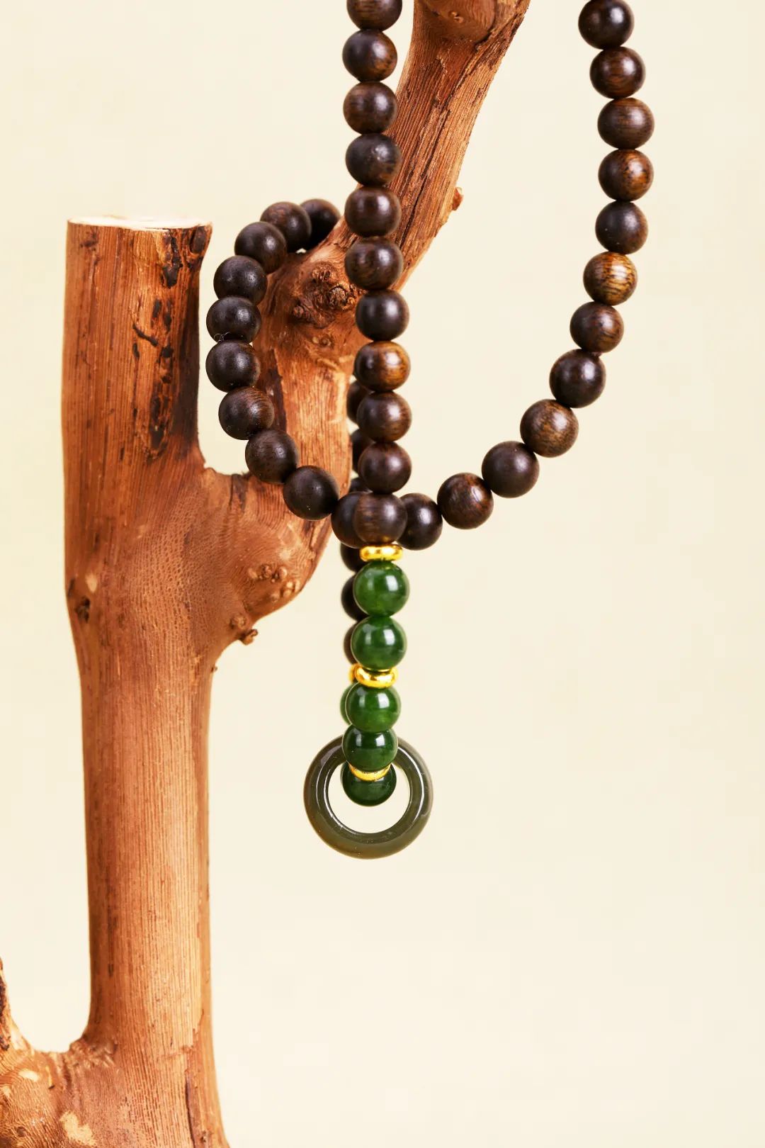 它用越南芽庄棋楠沉香串起岁月淬炼的优雅,玉石垂坠东方智慧。