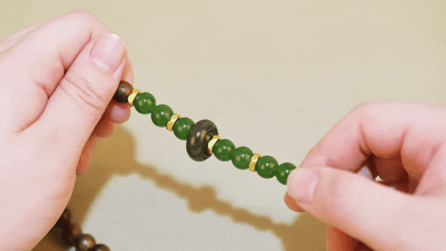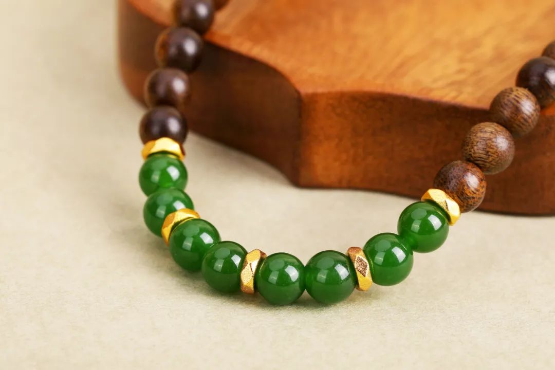 它精选新疆产的和田碧玉,每一颗玉珠都经过严格筛选,确保质地细腻、色泽均匀。