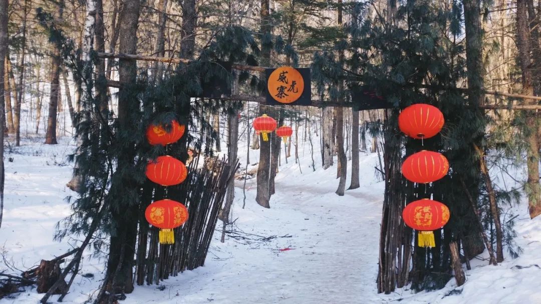 没想到这个体验中马儿还带着我们跃进林海,路过提前设置好的”土匪寨“、”东北乡村人家“,对于南方孩子来说是个土味但有趣😂的体验,十分新奇,顿时想到”乡村爱情故事“。