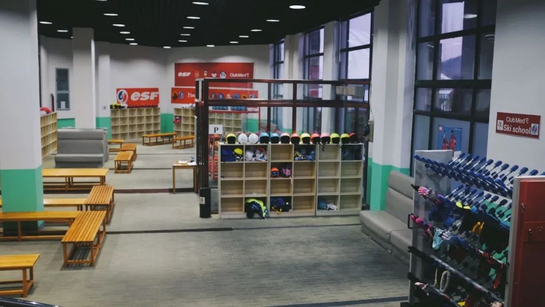 为了让第二天上课更从容,G.O们都会贴心引导大家在前一天的晚上就将雪板、头盔、雪鞋(雪具均需付费)等设备租赁并调试完毕放入雪柜(和北大壶一样,房间号就是雪柜号,这是免费的哦)。和北大壶不同,除雪服外,雪镜也同样可以付费租赁(一套雪具租价在368元+/日)