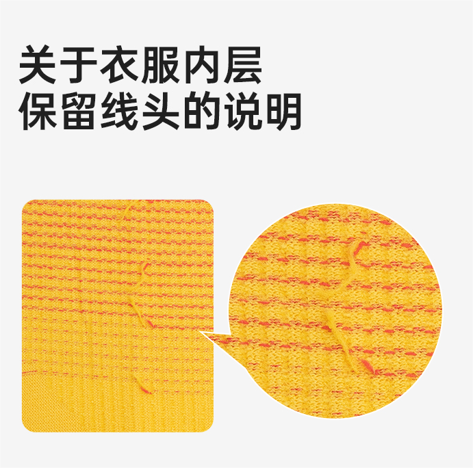 *此款衣服内层有一定长度的线头保留,因为衣服的渐变色彩是通过彩色纱线换线工艺织造而成,换掉的彩线会由机器自动切割保留有一定长度的线头和线尾,线头和线尾不能贴衣服面层切断否则线头会跑到衣服表层形成破洞,但是线头经过机器打磨不会影响穿着舒适度所以不要人为剪断。