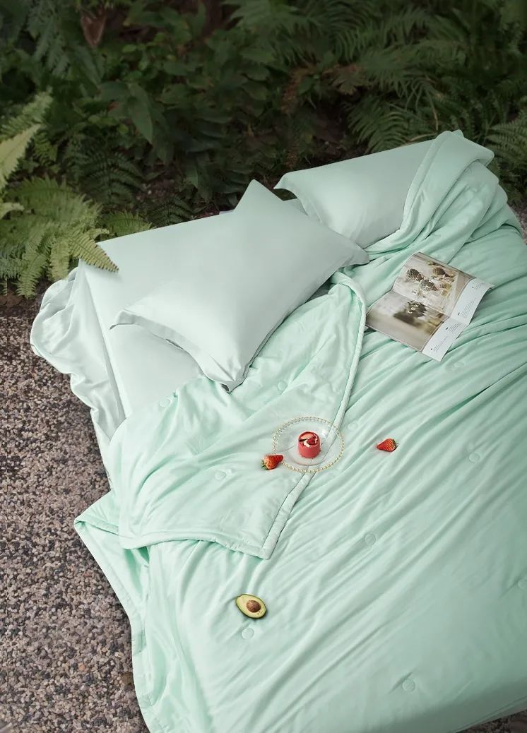 洗完澡,钻进这床顺滑的艾草薄荷被,我甚至感觉皮肤都更嫩滑了,整个人都更爽快!