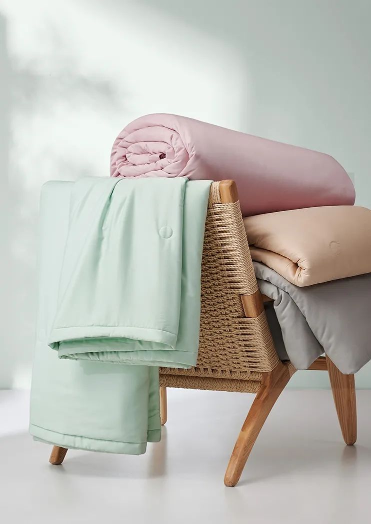 外加天然的薄荷醇赋予夏凉被被子清凉的触感,在炎热的夏天可以帮我们祛暑解热,加上薄荷纤维为圆形截面,使得面料有丝光感,手感更爽滑,当织物拂过肌肤的瞬间,如同树影间的微风,清爽自然。