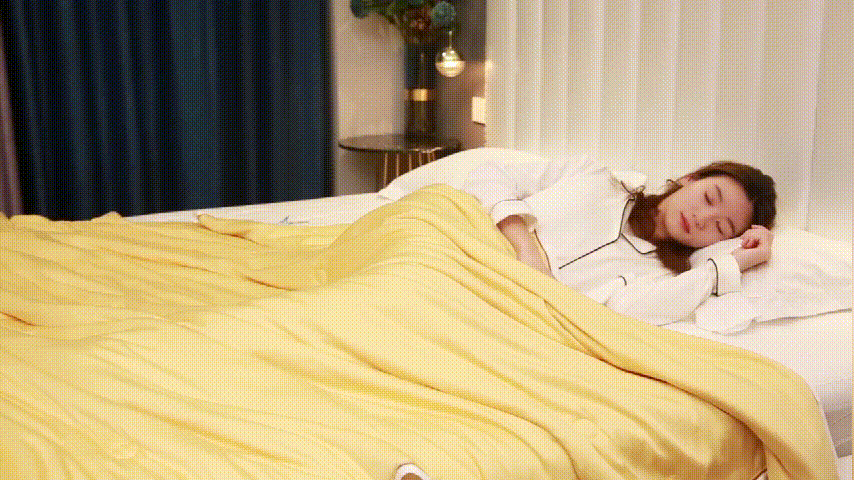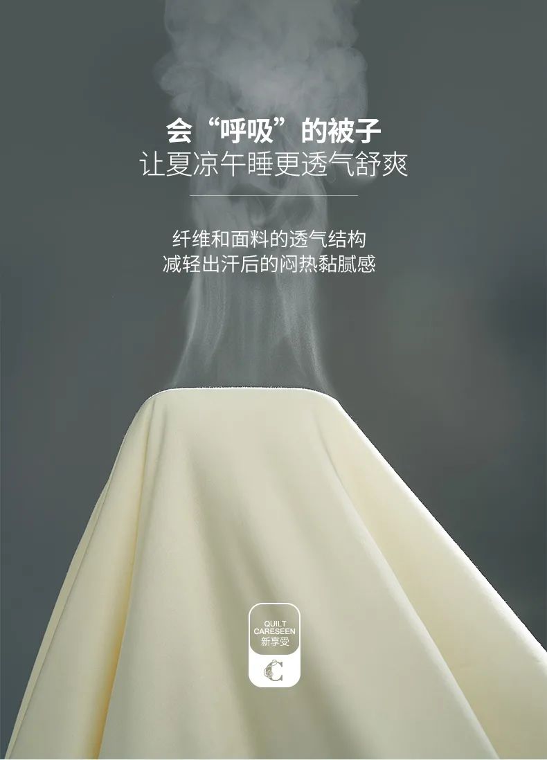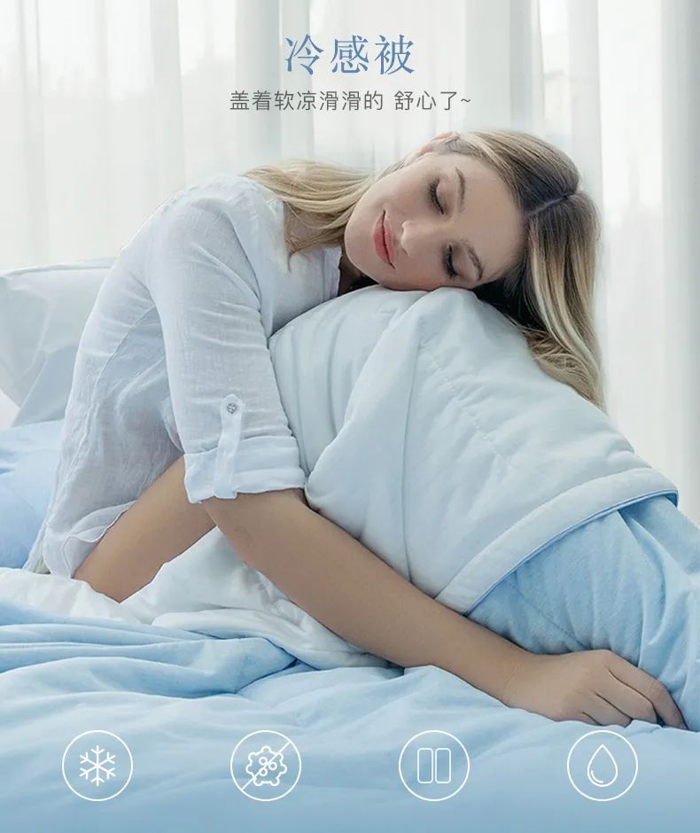 这种面料翻身也不会一激灵、冰到自己,随着体温慢慢散热。盖上它犹如吹着24度的空调。