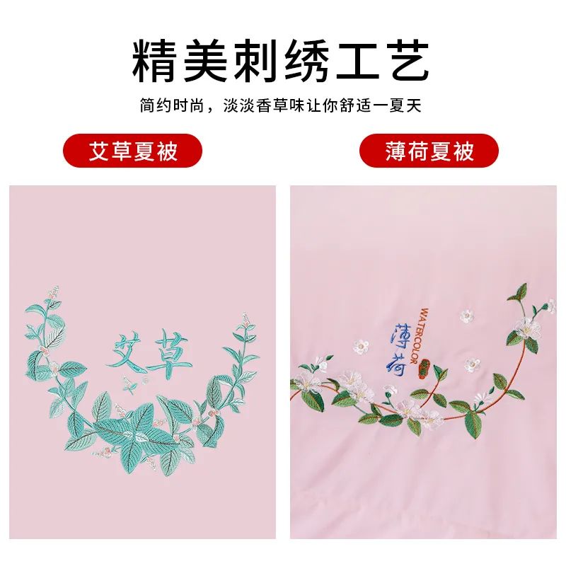 完美的刺绣图案,被子显得更加精致;艾草、薄荷两种花型可选,如果你喜欢艾草味重一点选择艾草款;喜欢艾草味道淡一点选择薄荷款。