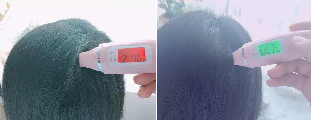 使用后:头皮水分值52%,油分17%。