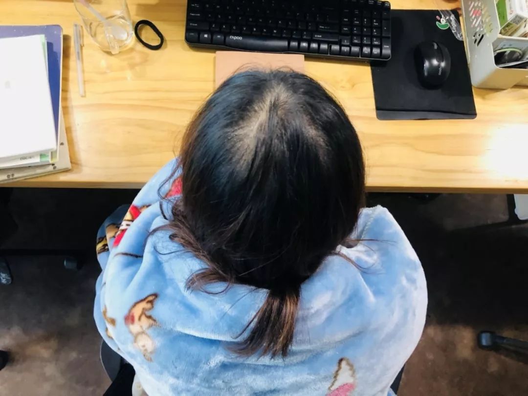 被同事拍下了脱发相当严重的头顶