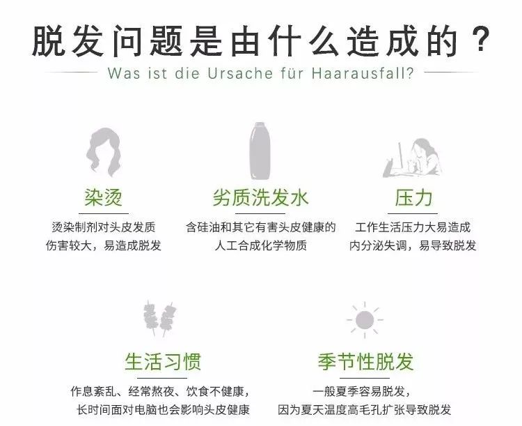 针对烫染,含硅油及其他人工化学物质损害头皮造成的脱发掉发。