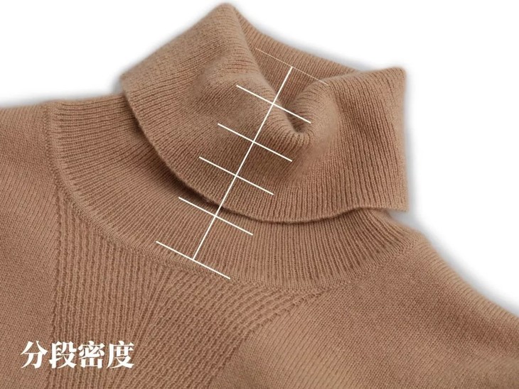 之前1.0 版本的双翻领羊绒衫,市场反馈比较紧。因此,今年再次做了工艺升级。加入分段密度的新工艺,在工艺过程中将原绒分成两段,该紧的紧,该松的松。