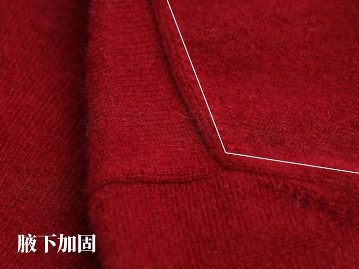 在袖口领口处,可以看到密密麻麻的匠人师傅的的套口工艺,侧缝 528 行,4000 个0.02cm的眼以上。而这 4000 个眼,是匠人师傅一个眼一个眼如士兵列阵般套上去的,没有 20 年的经验,根本无法做到这么精准。