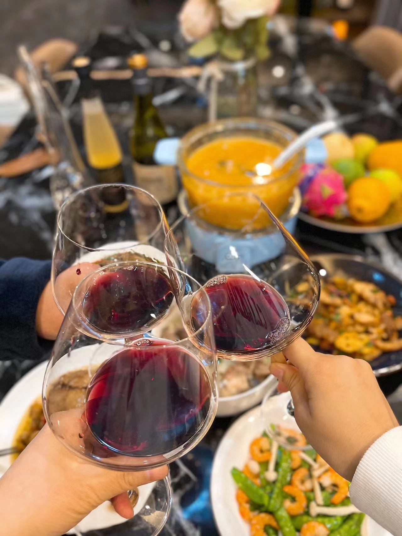今天喝的是以前朋友带来的圣芝罗纳河谷干红,醒酒15分钟后入口微微酸,淡淡的果香味非常适合日常饮用,性价比还是很高的,自己喝上一杯也很舒服