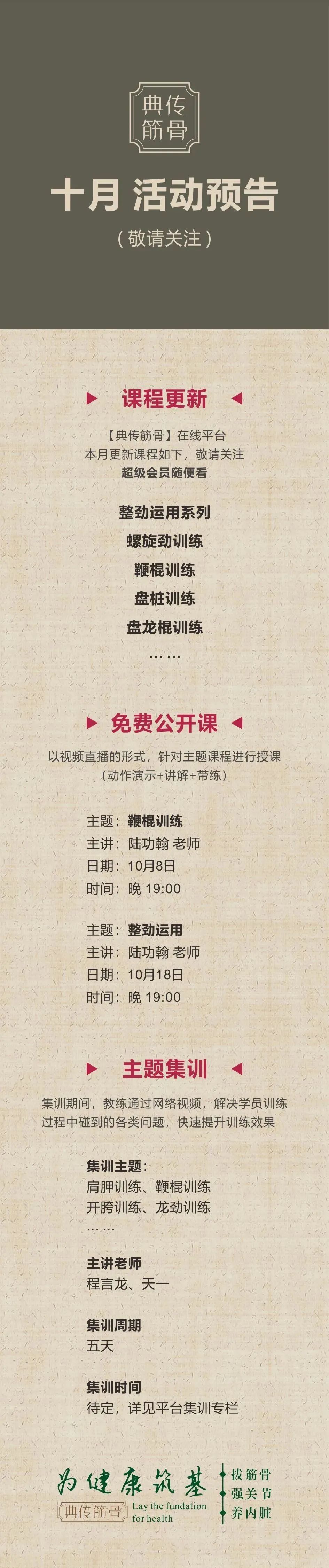 十月活动预告,包含了课程更新、免费公开课以及集训的相关活动信息,敬请关注。