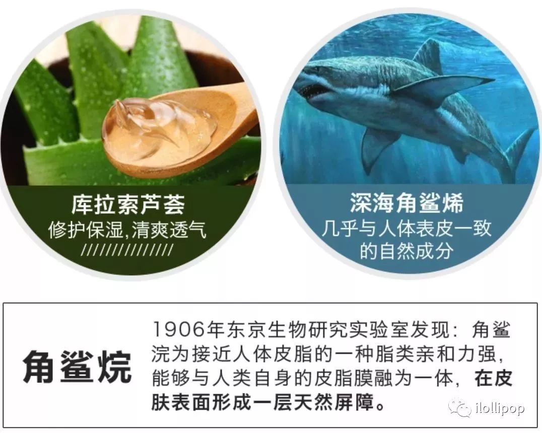 2. 鱼鲨烯:高保湿、修养表皮、抚平细纹。