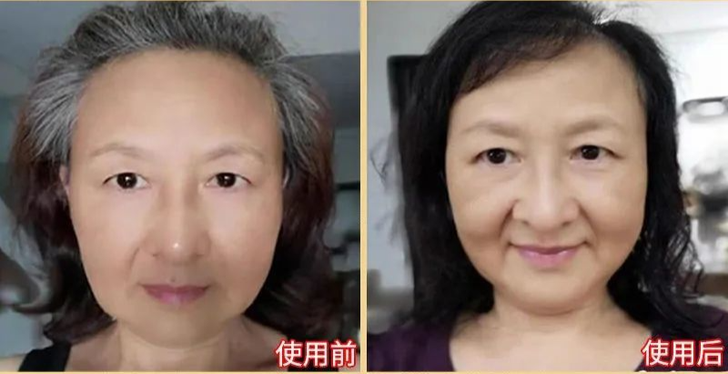 老伴也开始用,2个疗程左右,白发已经完全没有了,整个人都年轻多了。