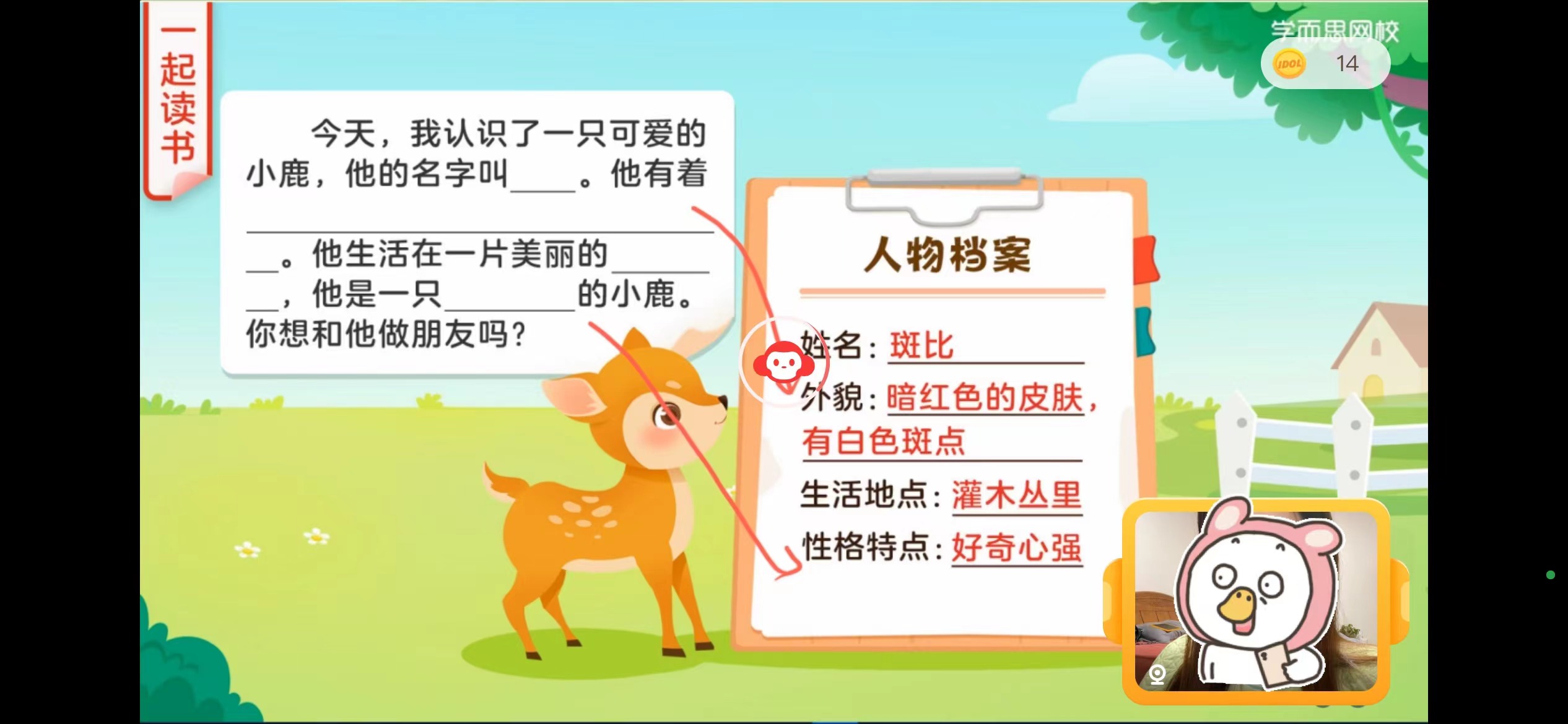 比如在L2的《小鹿斑比》课堂里,信息整合和圈画关键词,就是二年级孩子阅读理解必备方法。