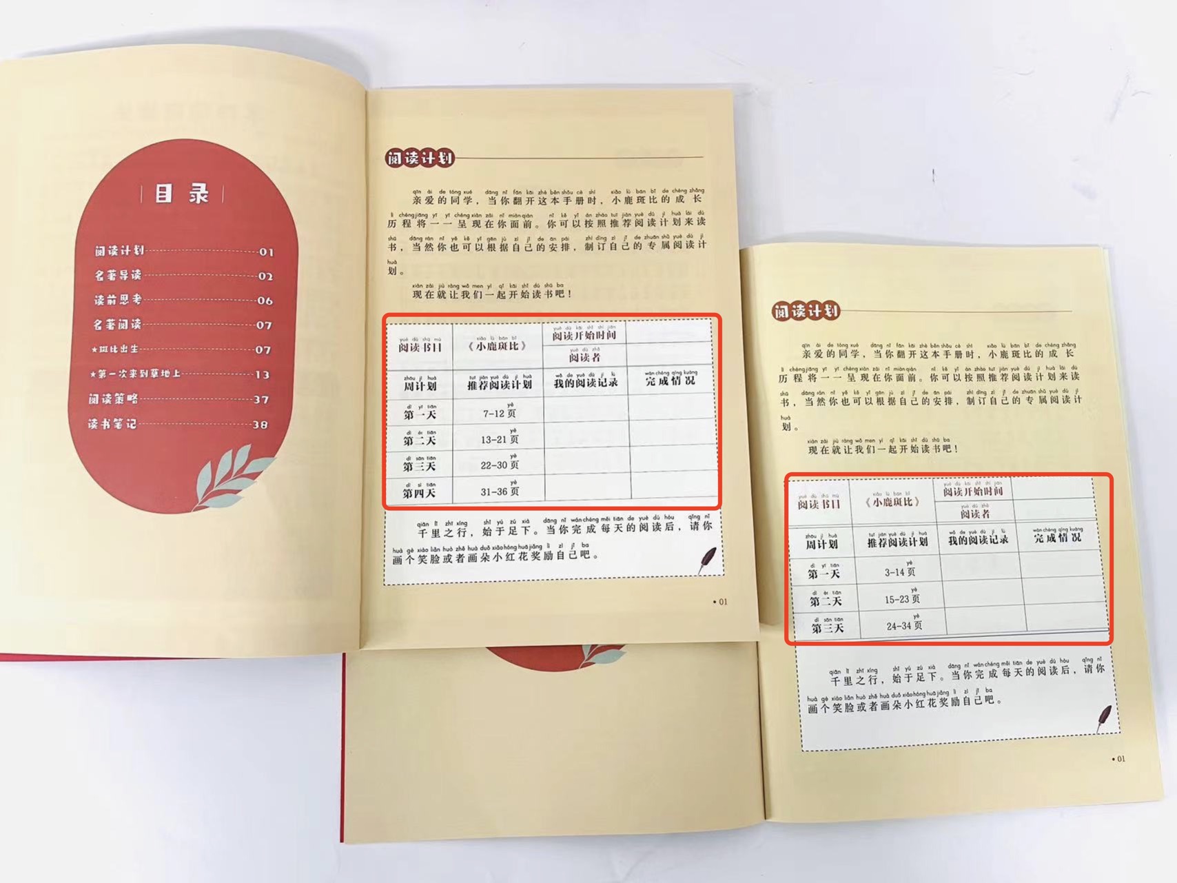 孩子一下子读大部头长篇著作,一时很难适应,因此大阅读把一本完整的书拆成了8个小册子,孩子们执行起来轻轻松松。