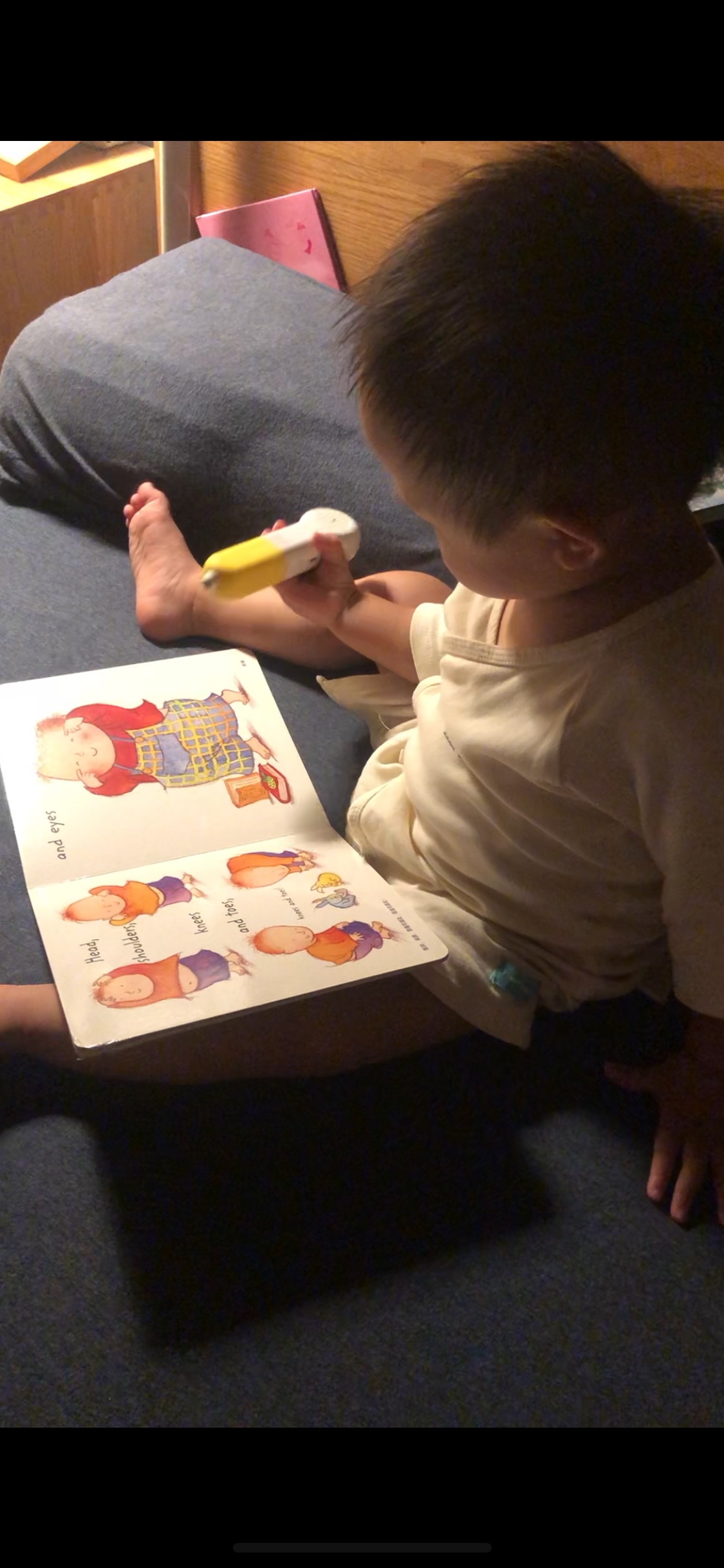 这本书对我来说感触最深,小麦瑞自己说的第一个单词是“Head”,我是偶然听到麦瑞在说“Head”,我觉得很意外,那个时候小麦瑞才一岁半左右,居然会说英语了?