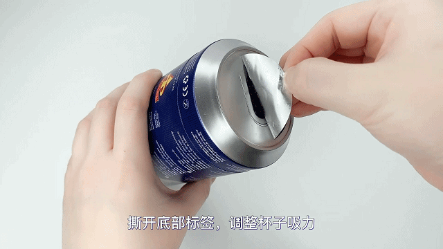 撕开瓶身底部标签,可以看到一个黑色的滑动开关。