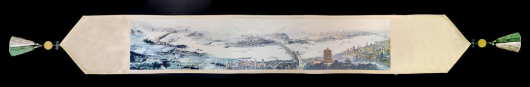 茶席为定制“湖北——从长江走向世界”的主题桌旗,寓意湖北回望过去,展望未来。