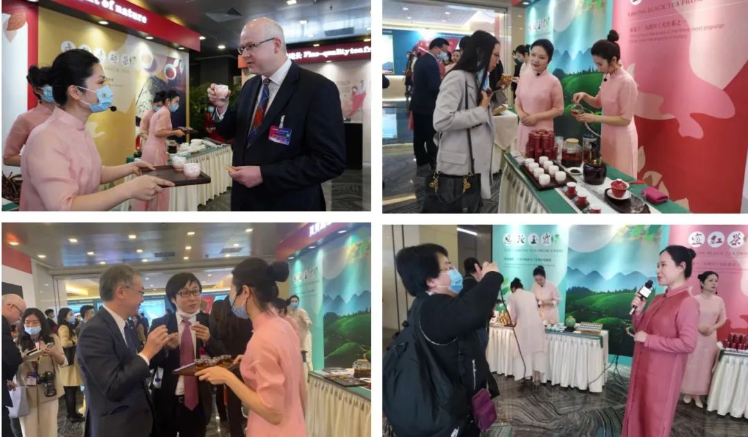 此次在外交部蓝厅展示的湖北茶品,以“灵秀湖北•生态好茶”为主题,以文化展板、实物展示、茶艺演示结合的方式,展示了湖北悠久的茶文化和湖北特色名茶宜红茶、恩施玉露和赤壁青砖茶。