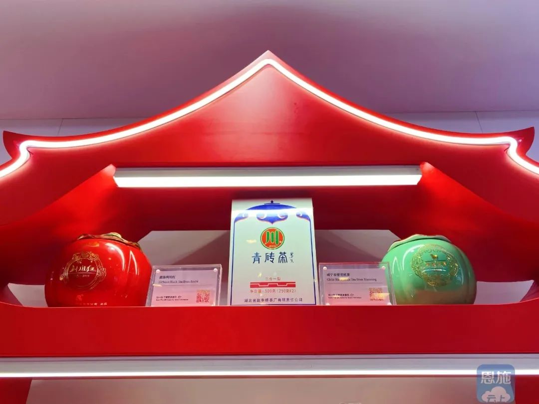 实物展示主打湖北省特色优质历史名茶代表“一红一绿一黑”,即宜红工夫红茶、恩施玉露绿茶、赤壁青砖茶的经典产品,精心遴选了十余款展品,茶品既有传统产品,也有创新型产品,体现了茶科技、茶产业的蓬勃发展。